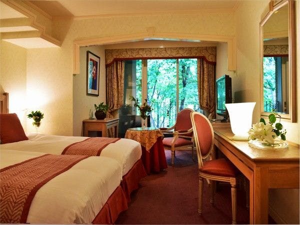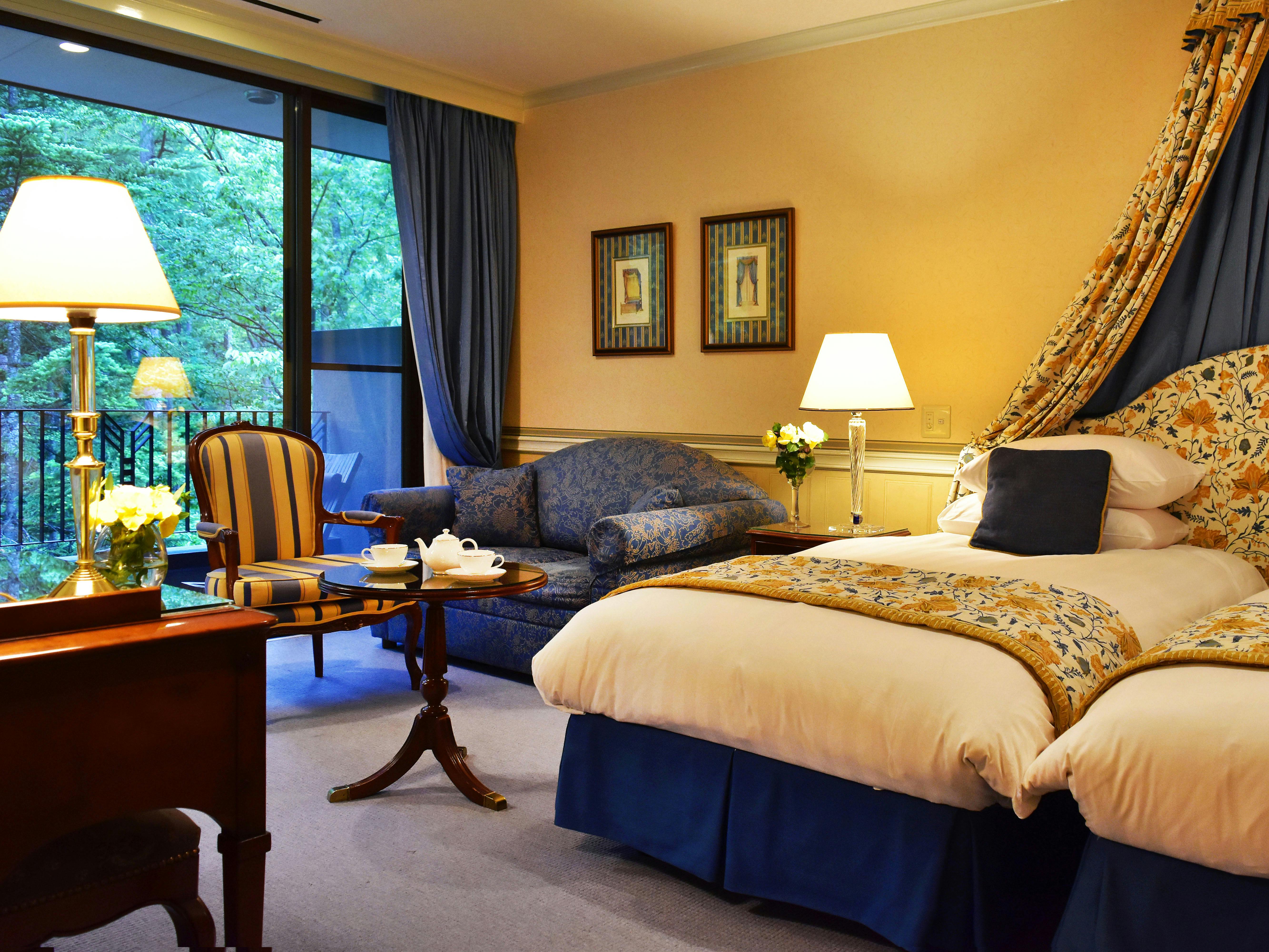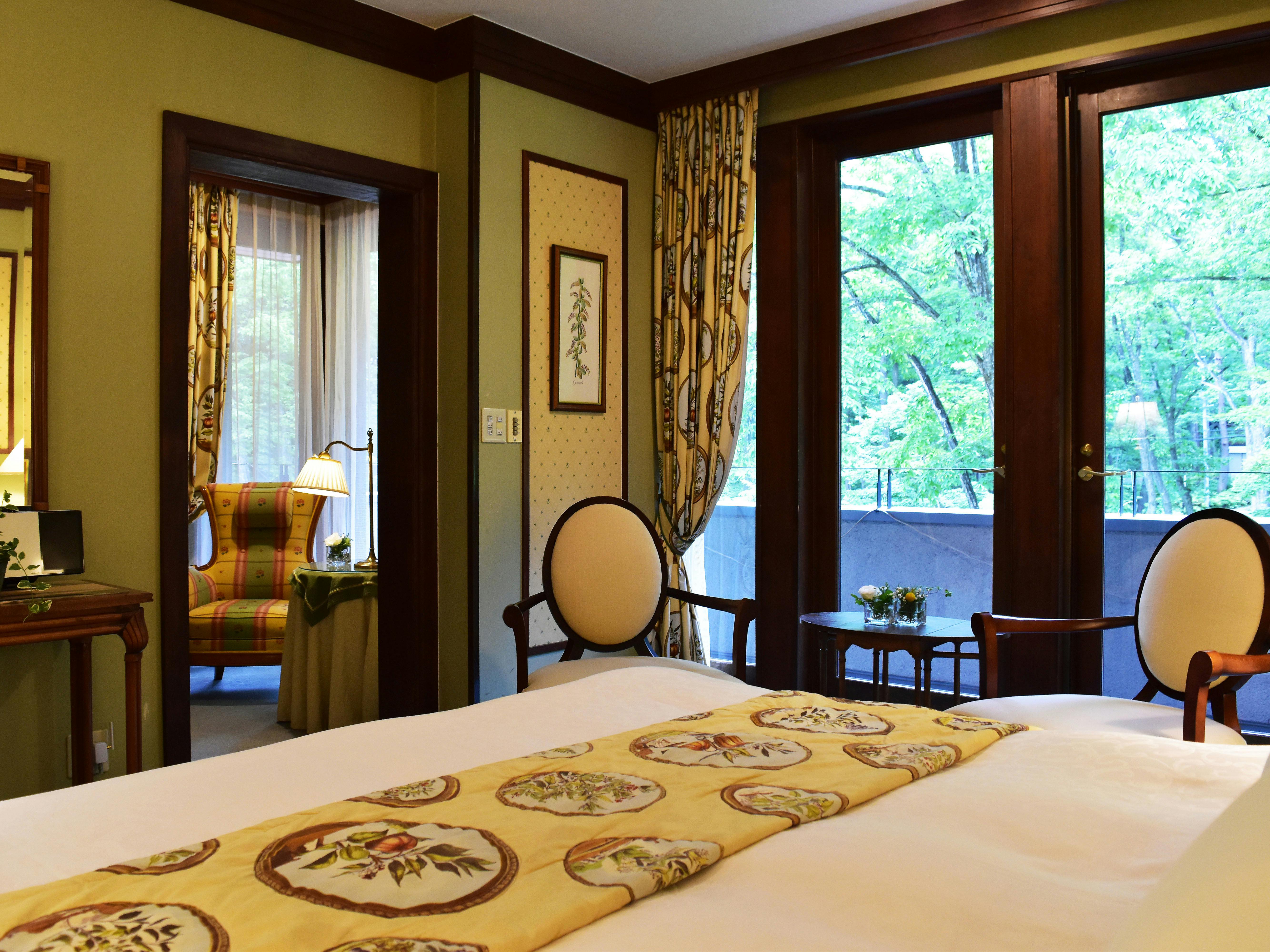 広大な森に囲まれたヨーロピアンタイプのホテル。優雅で気品に満ちた館内。全室趣の異なる客室。大きな窓の森のジャグジーバス。極上の癒しの空間を。
