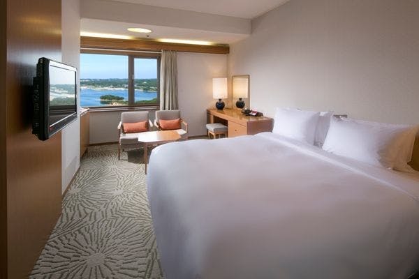 美しい英虞湾(あごわん)の景観とともに木のぬくもりと志摩の自然を感じる安らぎのひとときを。伊勢志摩の自然をモチーフにしたデザインの客室は機能性にあたたかさが調和したくつろぎの空間。海と森が織り成す英虞湾の景色が存分に愉しめるお部屋です。※画像はイメージです。眺望は客室により異なります。 ※3名様利用の場合、1名様はエキストラベッドでのご用意となります。