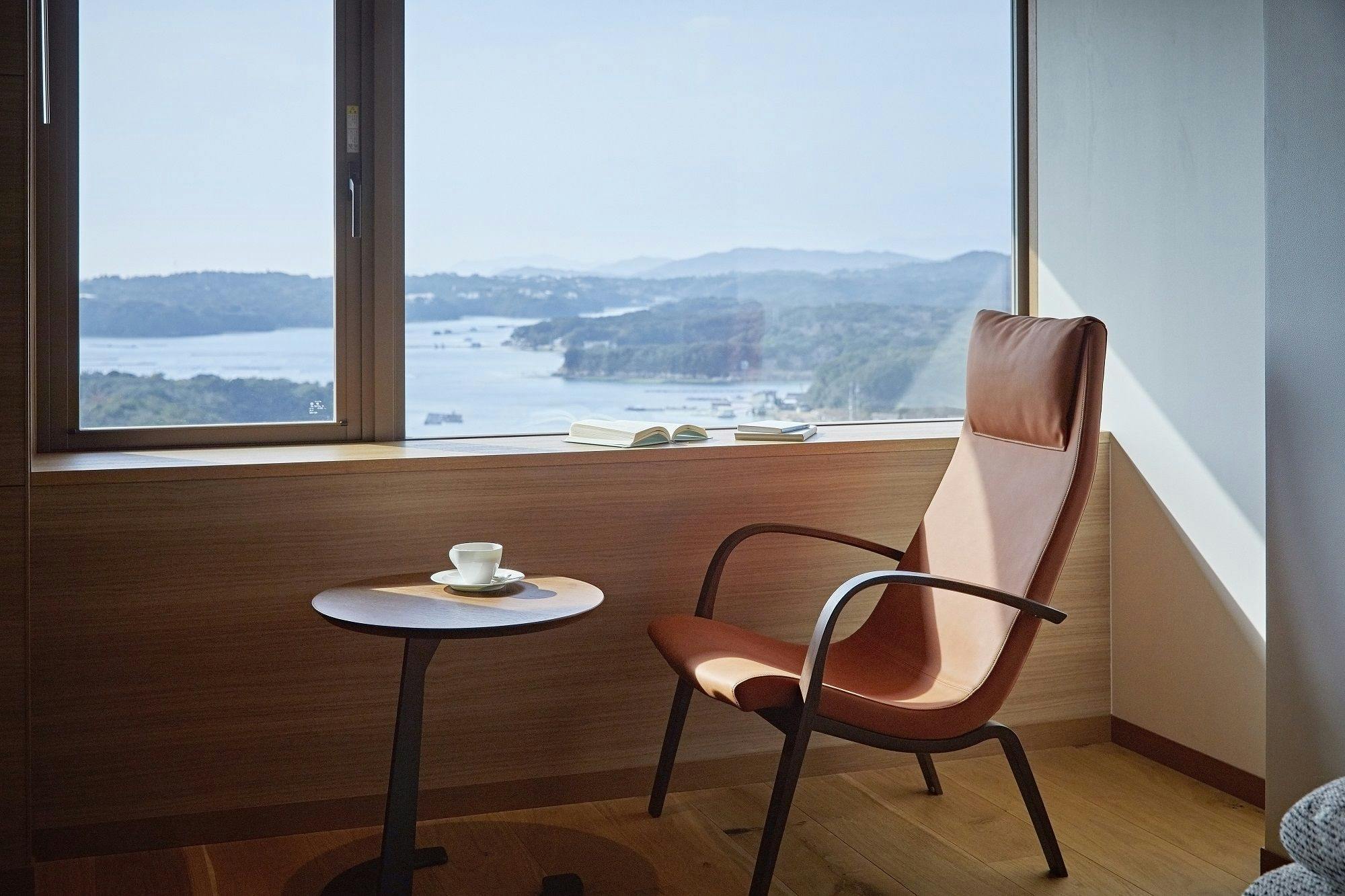 真珠筏が浮かぶ穏やかな英虞湾の景色を窓側のベンチシートから眺める。シンプルでモダンなインテリア空間で過ごすおだやかなひととき。※画像はイメージです。眺望は客室により異なります。 ※3名様利用の場合、1名様はエキストラベッドでのご用意となります。