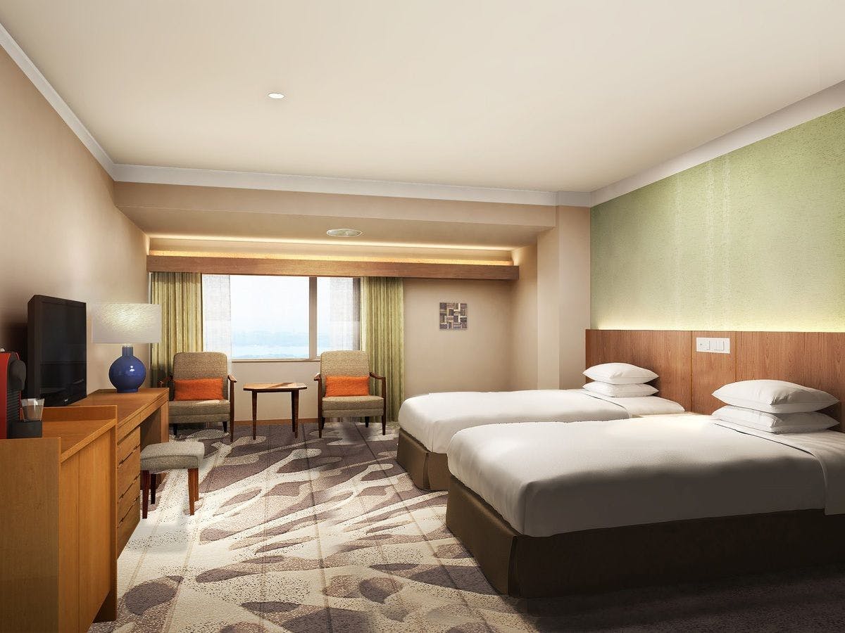 昭和を代表する建築家・村野藤吾氏のテイストが残るクラシカルな客室。窓からみえる賢島の景色と、あたたかみあふれる落ち着いた空間で、穏やかなひとときを。※画像はイメージです。眺望は客室により異なります。 ※3名様利用の場合、1名様はエキストラベッドでのご用意となります。