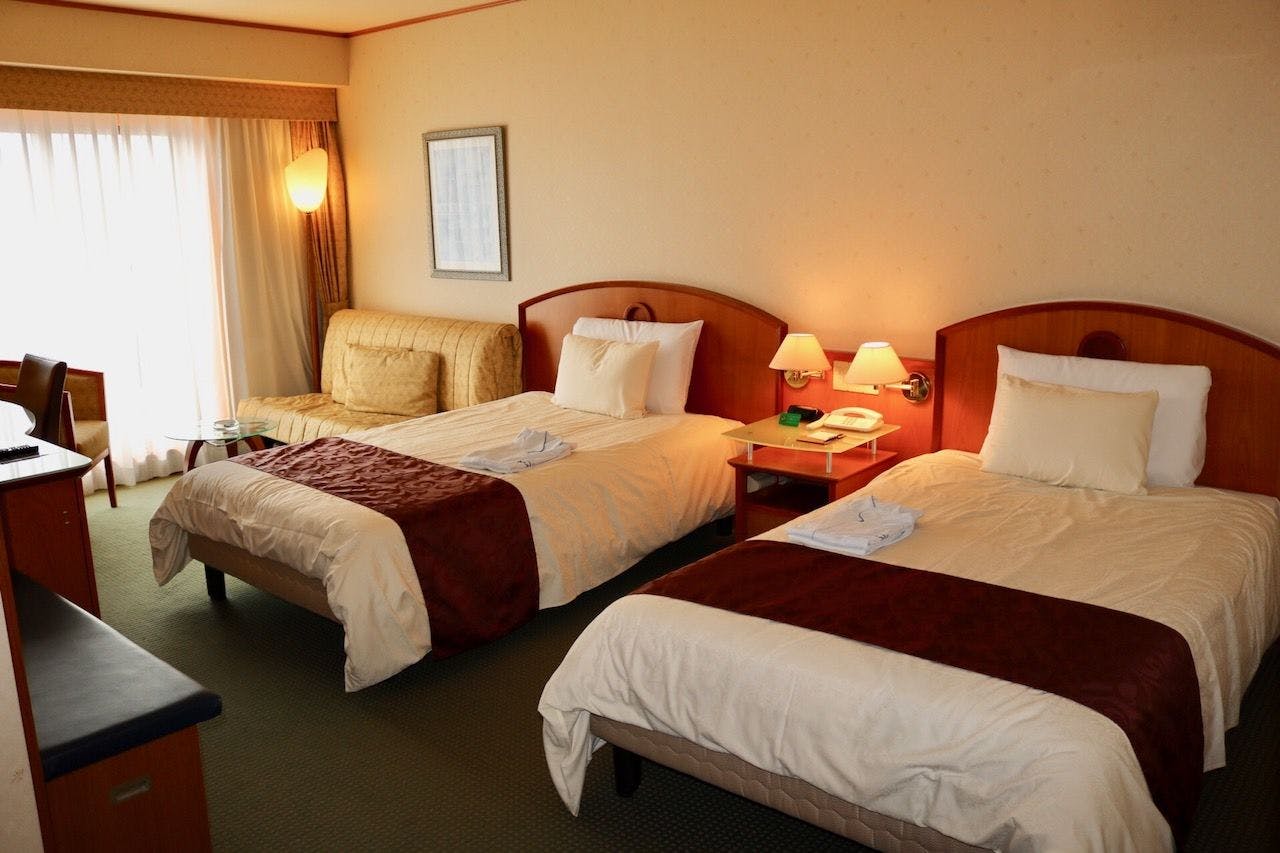 開放的な室内にセミダブルベッドを2台ご用意。ご家族や出張でご利用の方にオススメのお部屋です。全室オーシャンビュー、ジェットバスを完備。