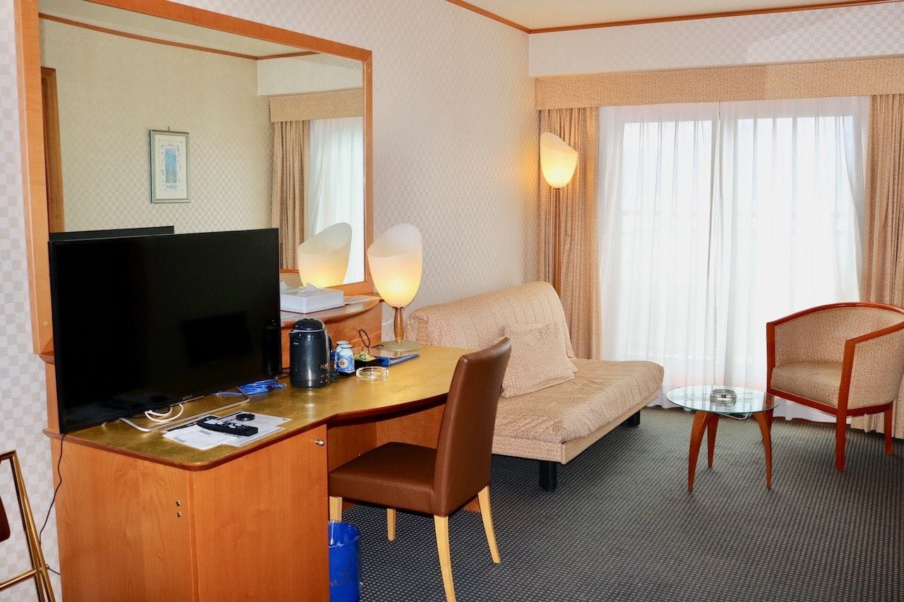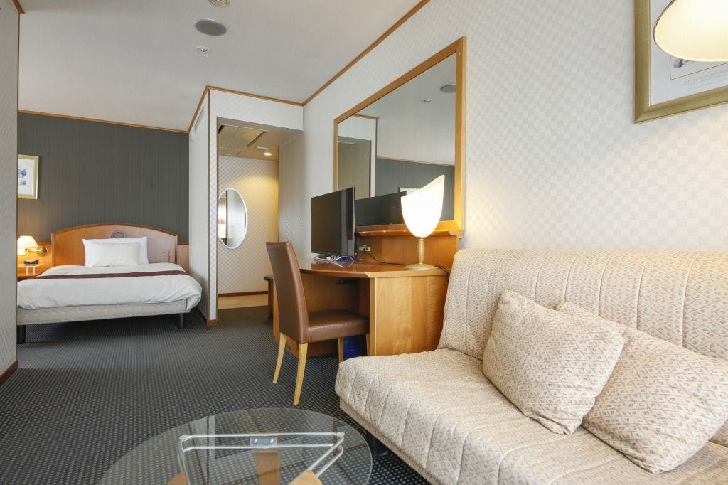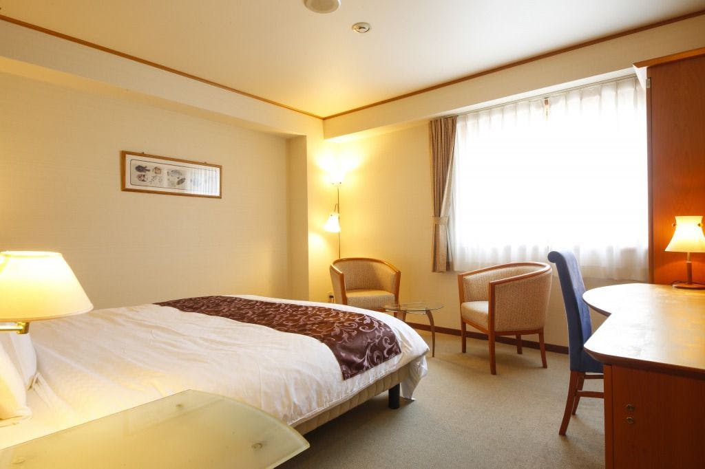 広々としたデスクと140cm幅のダブルベッドでビジネスやレジャーなど様々なシーンでご利用いただけます。お風呂はユニットバス。