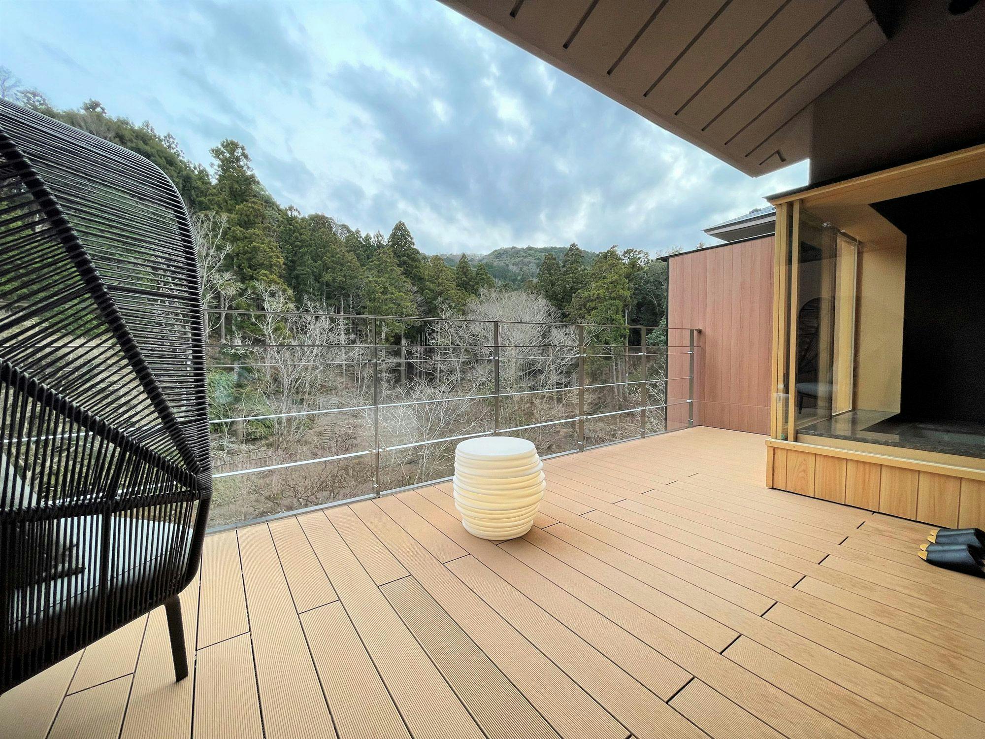 これまでの客室に、広いテラスと開放的な半露天風呂温泉や和ベッドを設置し、