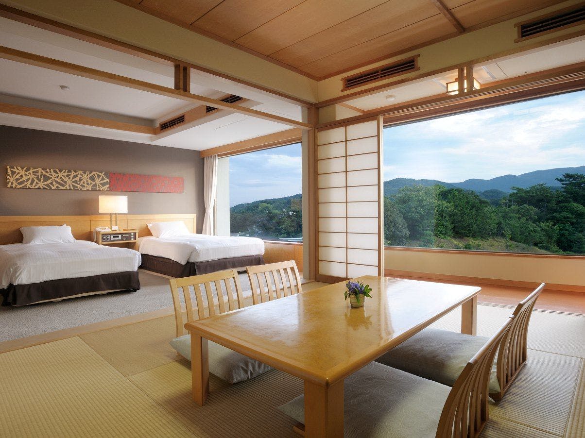 落ち着いた和室を備えた広いお部屋です。広々とした和洋のコンビネーションは、ご家族・グループでのご利用にお奨めします。