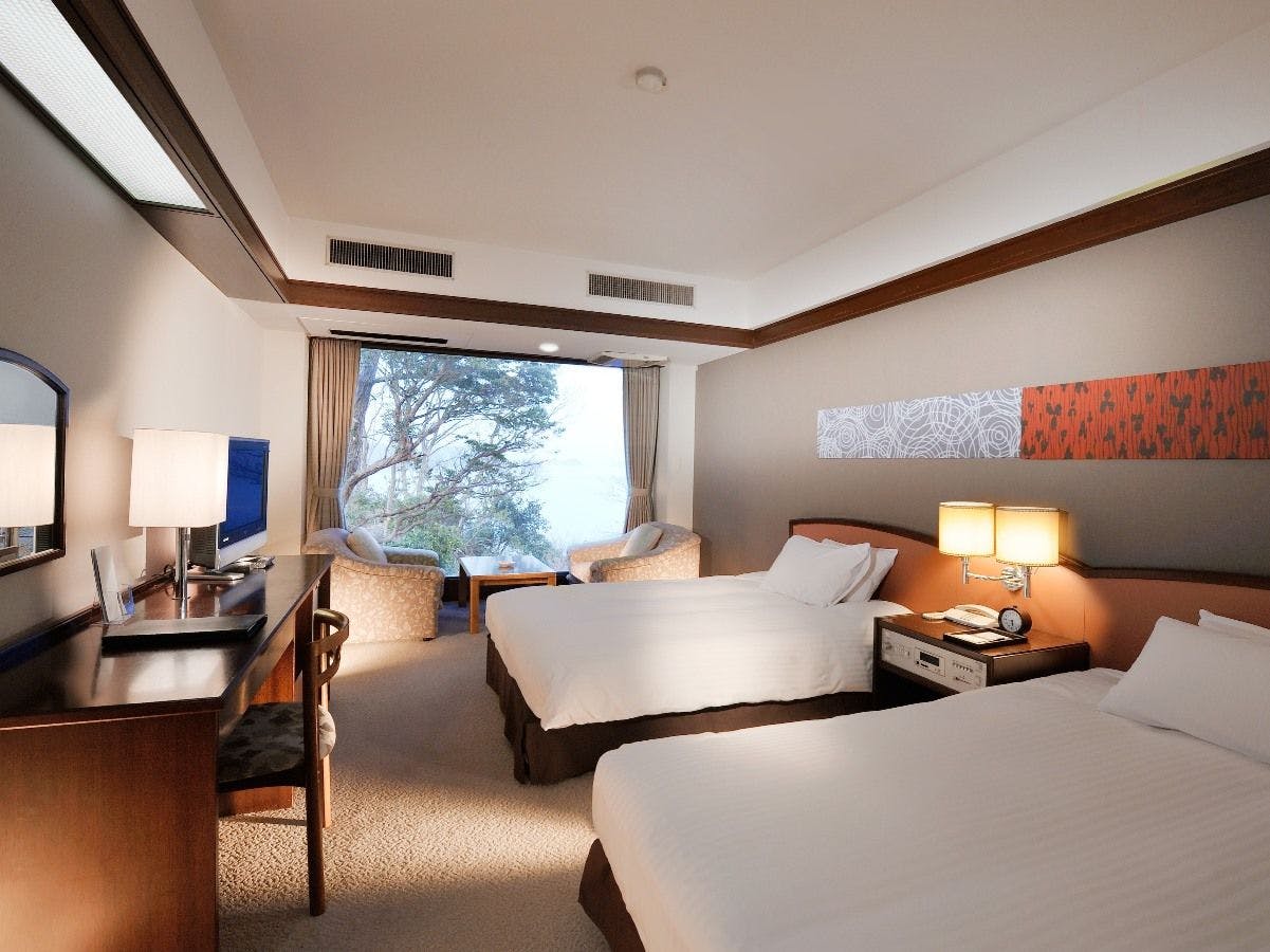 山側のため、海側の客室よりお値打ちな料金でご利用いただけます。海の眺めはオーシャンウィング2Fのテラスやラウンジにてお楽しみください。