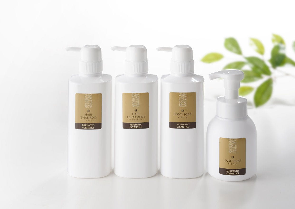 ミキモトコスメティックスが当ホテルのために独自に開発したアメニティ(シャンプー・コンディショナー・ボディソープ・ハンドソープ、固形石鹸)をご用意致します。