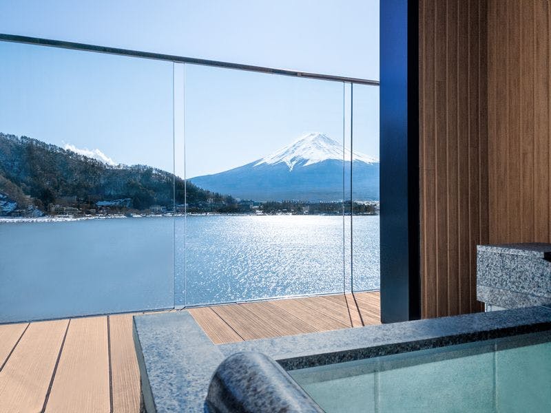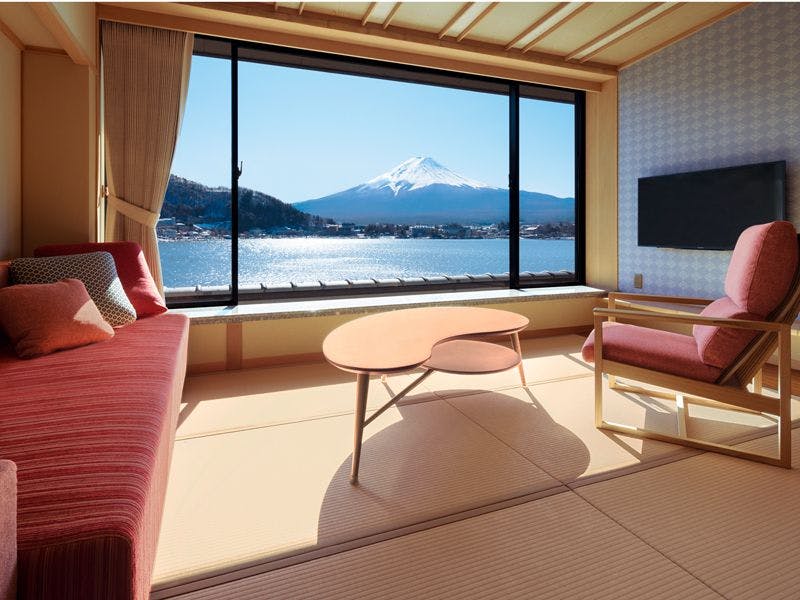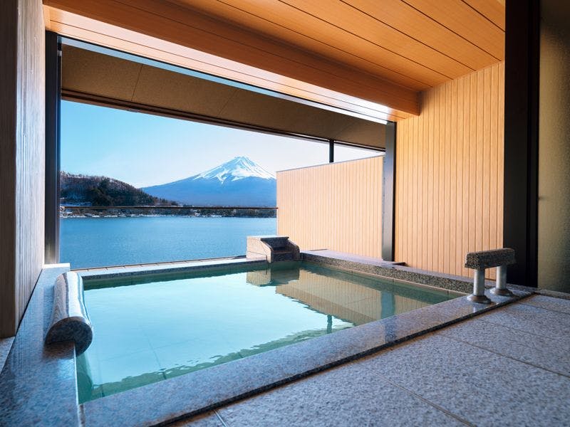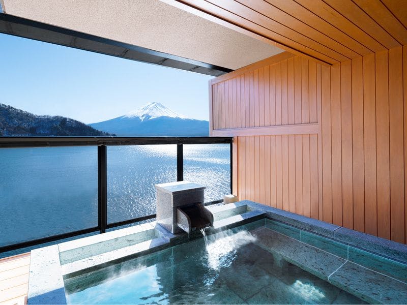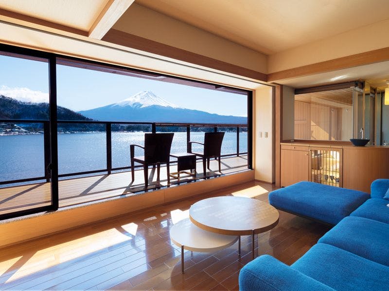 【間取り】和室+リビング+ベッドルーム+露天風呂付【定 員】2~6名【階 数】3~5階(指定できません)【眺 望】富士山、河口湖側【食 事】夕食:食事処/朝食:食事処【設 備】客室露天風呂・トイレ付 禁煙室 湯沸しポット ドライヤー 洗浄機付トイレ ベッド※客室露天風呂は温泉ではございません※写真・間取りは一例です。※特定のお部屋指定は承りかねます。