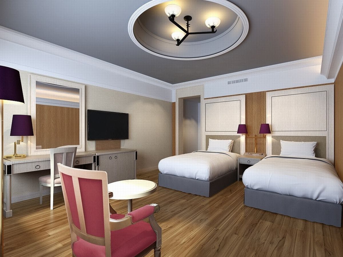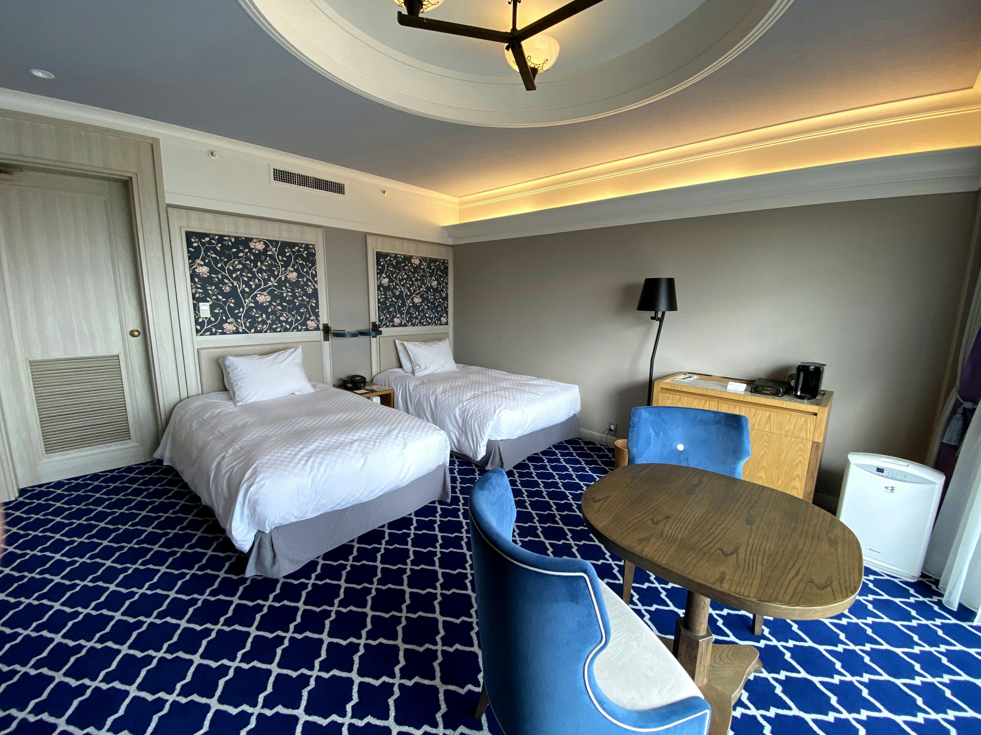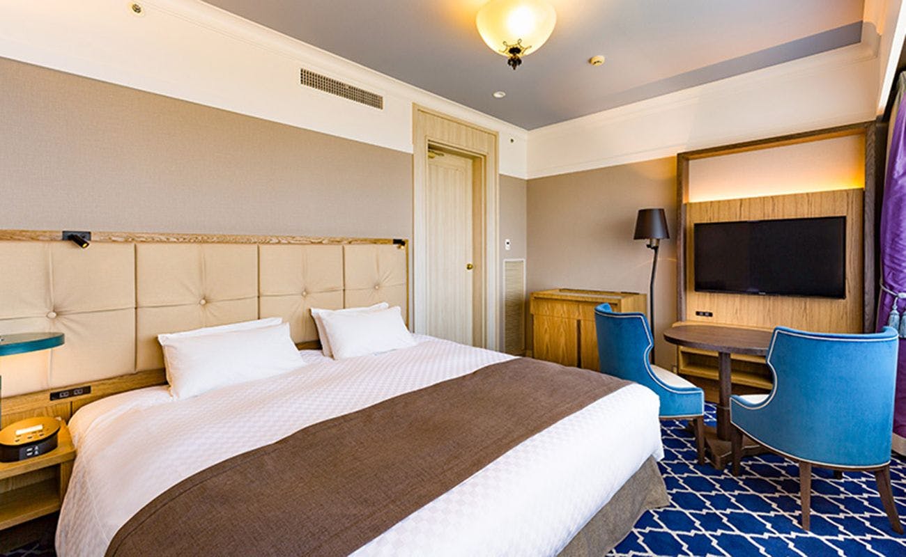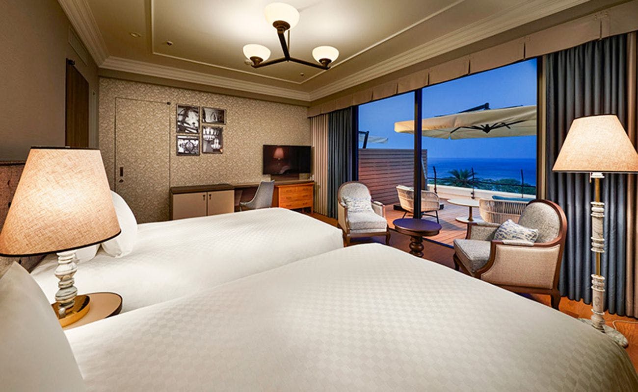 バス・シャワー・トイレ付き最大2名さままで利用できます(ベッドの追加不可)おだやかな海と伊豆大島を望む開放感あふれるオーシャンビューのお部屋でお寛ぎ下さい。美しい景色が心も身体(からだ)も癒してくれることでしょう。※客室画像は一例です。バルコニーのない部屋もございます。