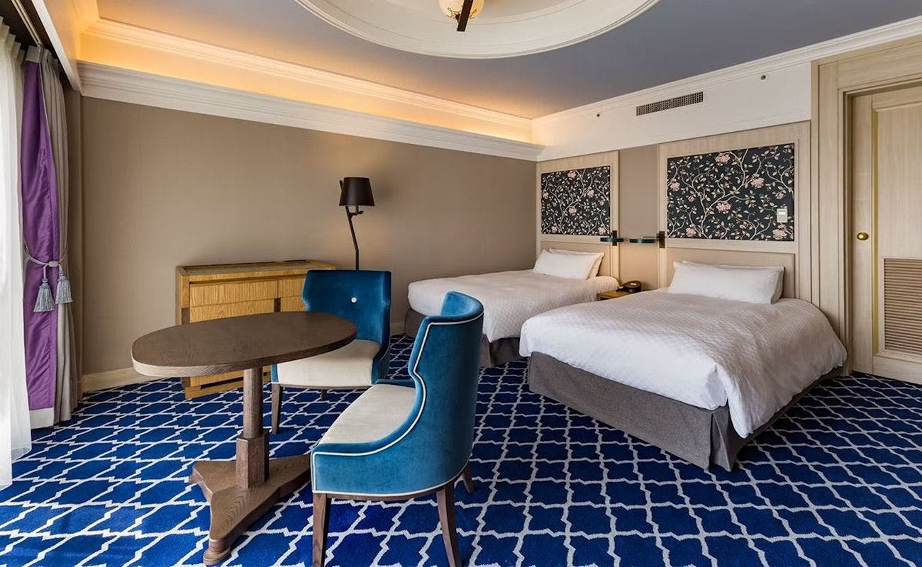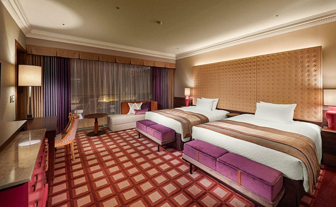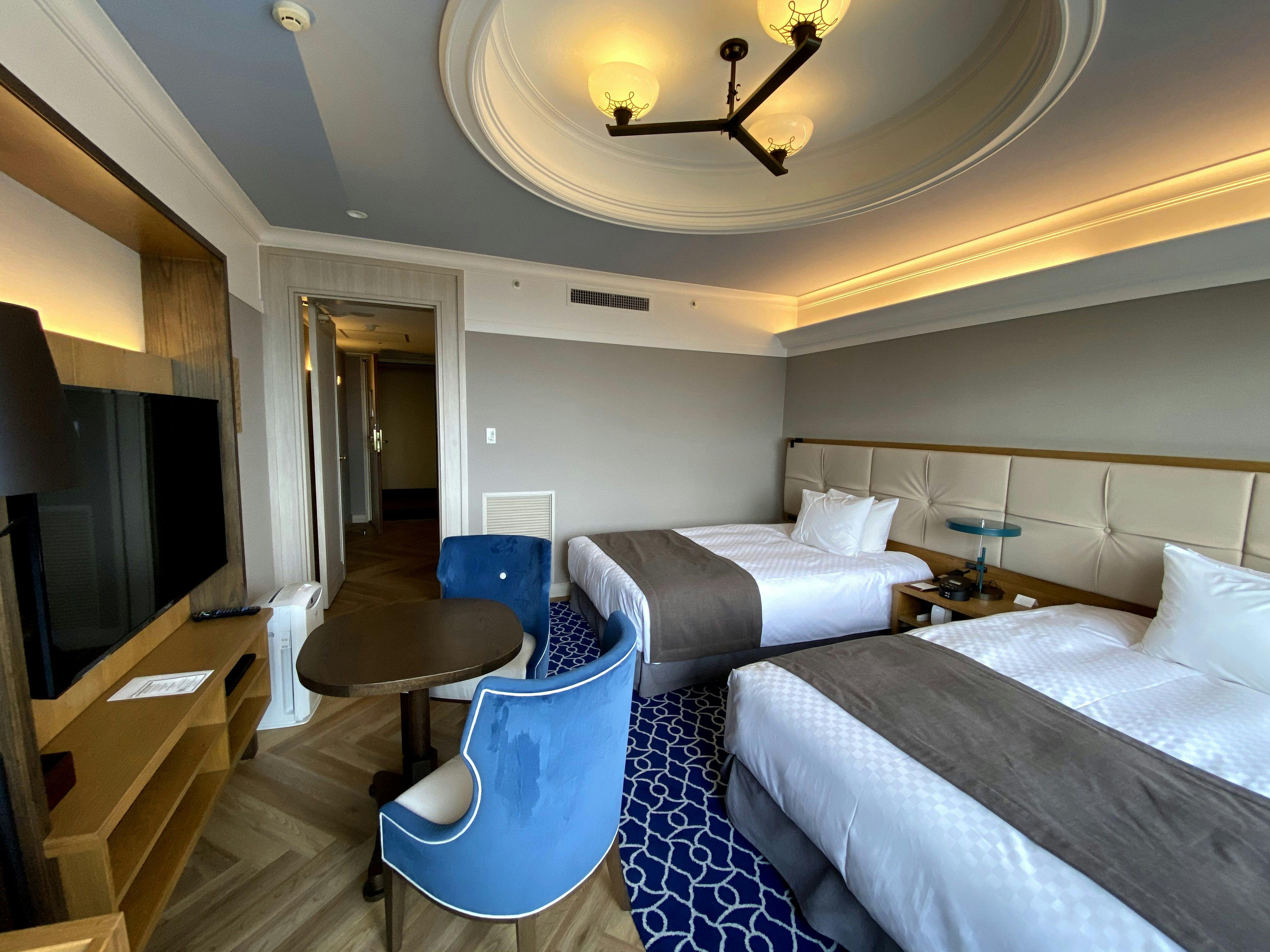 バス・シャワー・トイレ付きベッドはゆったり広めのワイドサイズです。(ベッドの追加不可)ベッドを密着させハリウッドツインにすることで最大4名さままで利用できます。ワイドな窓から見えるオーシャンビューのロケーションは非日常を感じさせます。