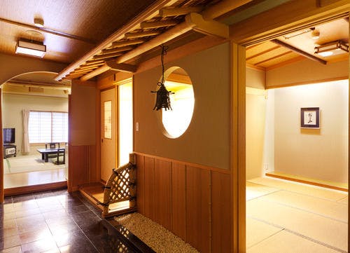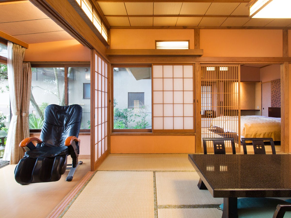 心地よい木漏れ日の降る小道に、ひっそり佇む離れ。それぞれ格調高い和の設えと共に、緑が薫る特別贅沢な時間をお過ごしいただけます。全てのお部屋に内風呂とマッサージチェアが付いたワンランク上の滞在をお楽しみ下さい。