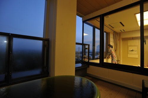 最上階からの特別なロケーションを生かした展望露天風呂付客室。