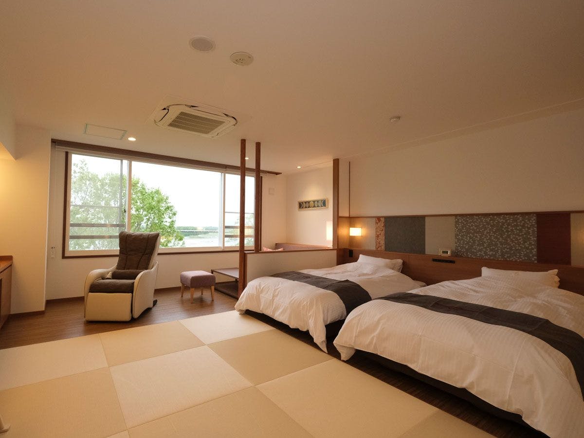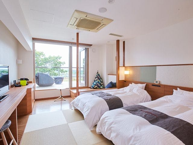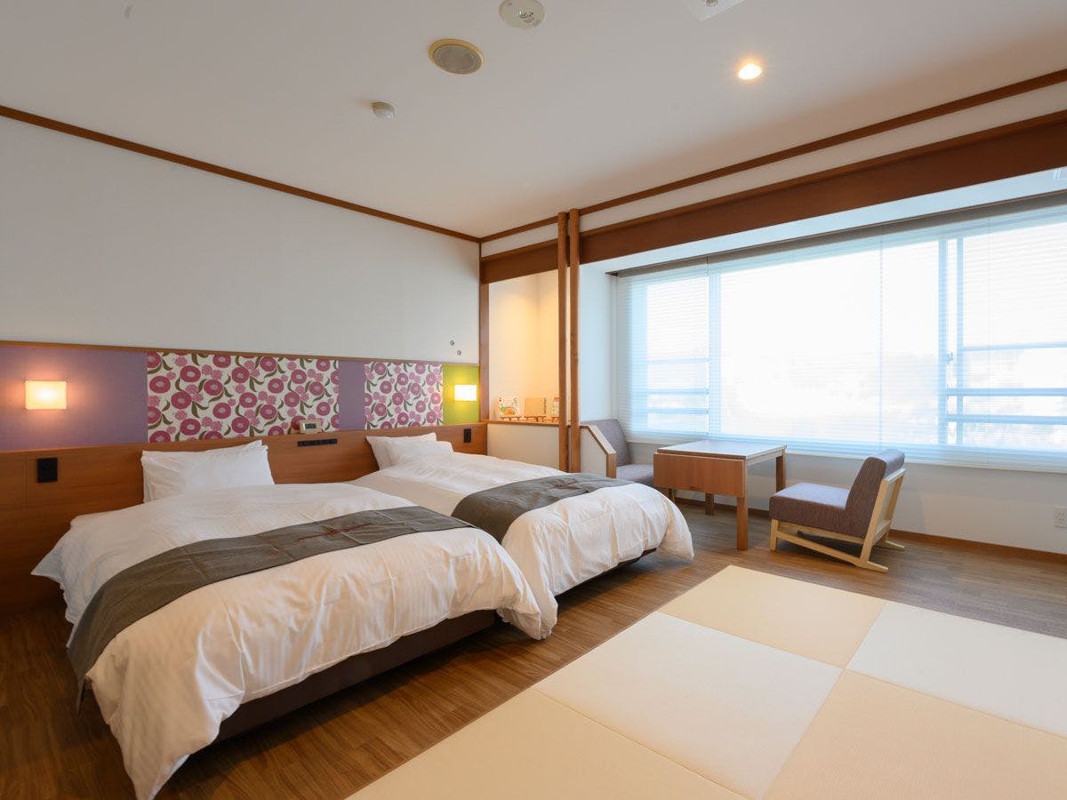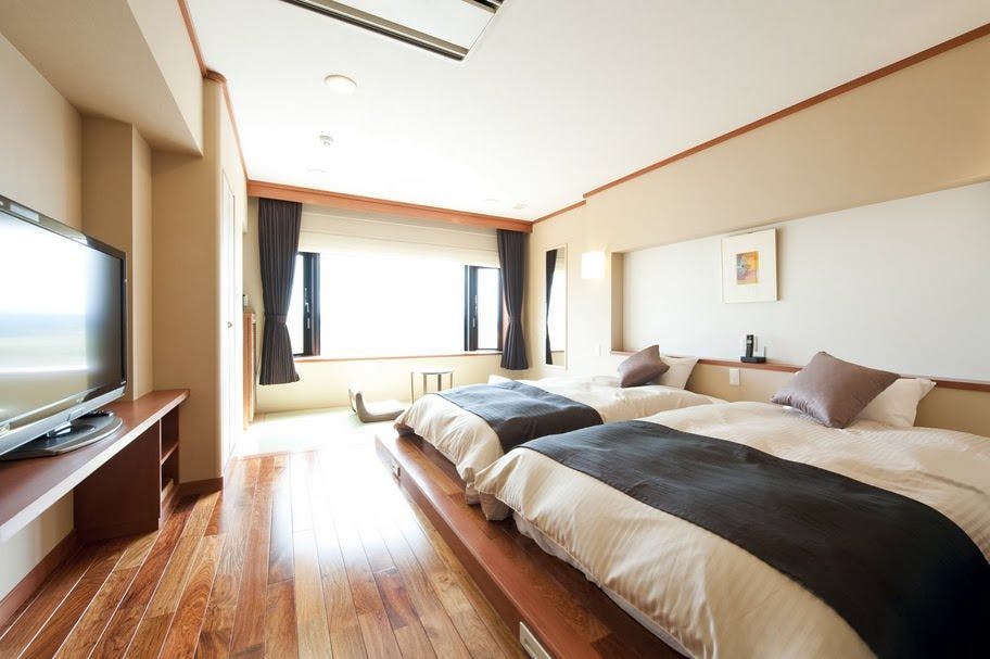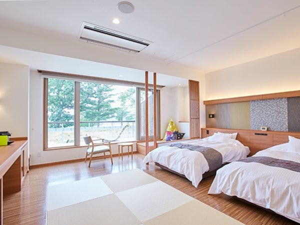 和洋室(10畳+ツイン)は、広い和室と心地よく眠れるベッドルームがあります。