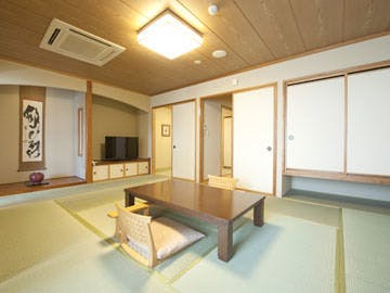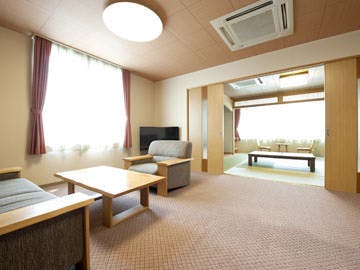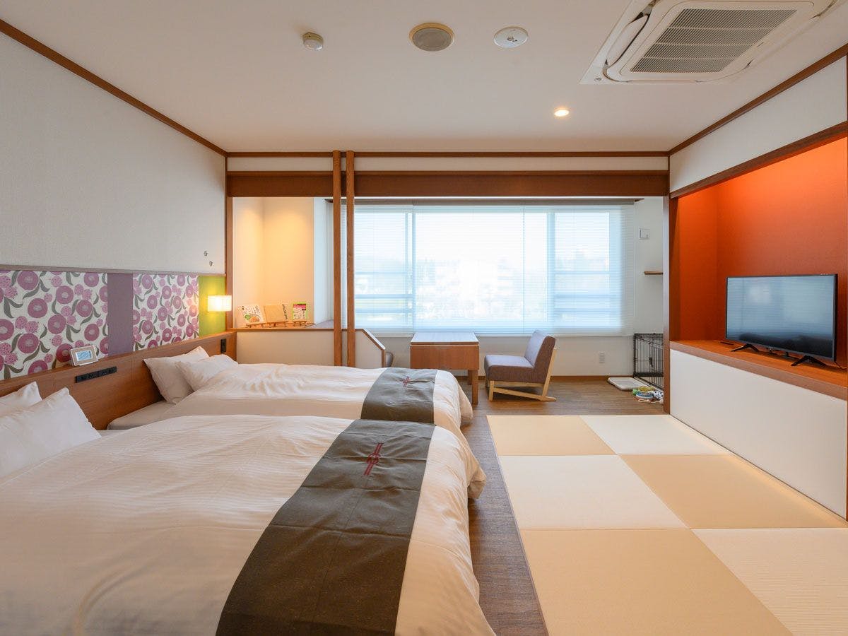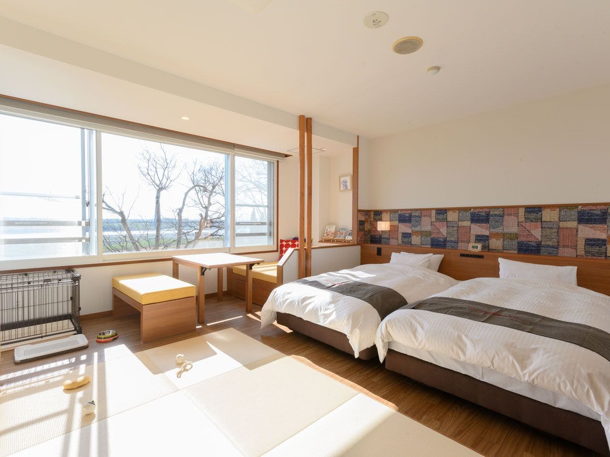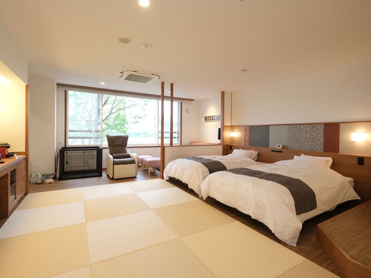 最愛のワンちゃんとともに、充実した温泉滞在が楽しめる、デラックス和洋室。