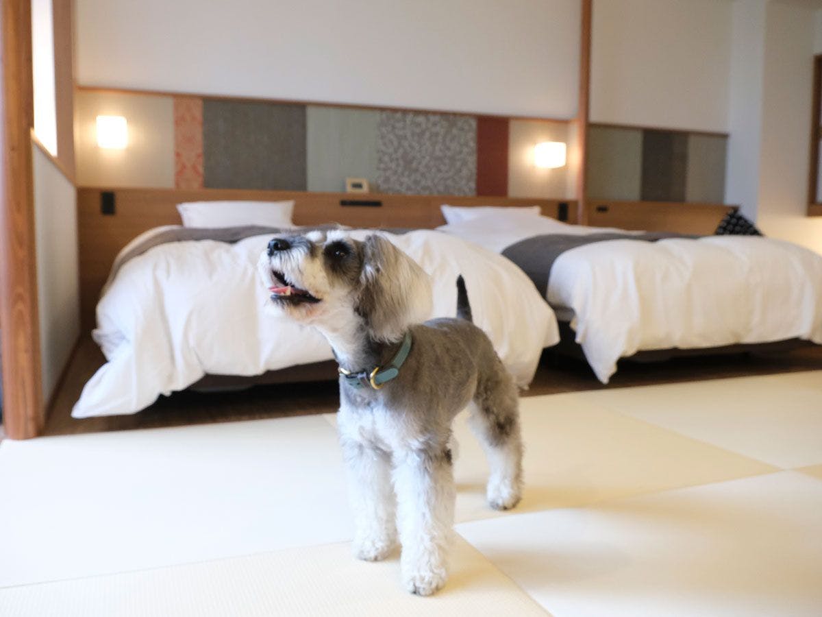 最愛のワンちゃんとともに、温泉滞在が楽しめる、ゆったり和洋室