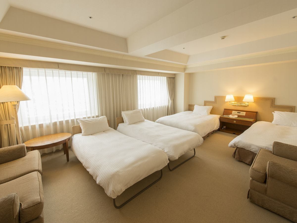 20階以上の高層階トリプルルーム【客室設備】テレビ/衛星放送/電話/冷蔵庫シャワー式トイレ/ズボンプレッサー/ヘアドライヤーセーフティーボックス/Wi-Fi対応【アメニティ】パジャマ/シャンプー/リンス/ボディーソープフェイスソープ/歯ブラシセット/髭剃りセットヘアブラシ/コーム/綿棒/衣類消臭スプレー