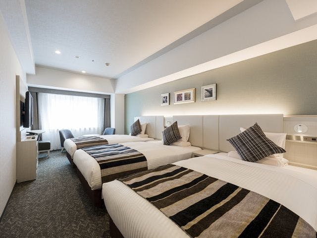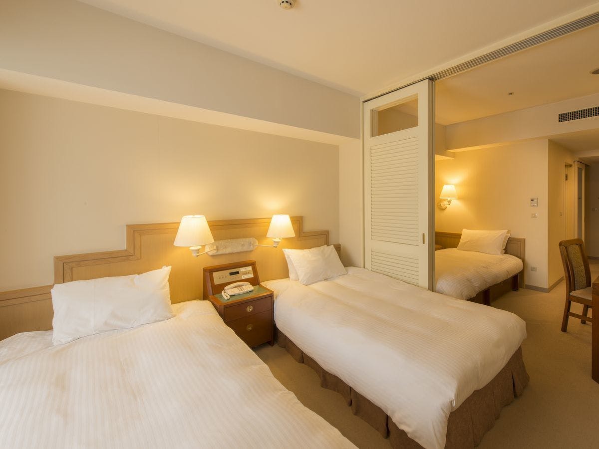 【広さ】27平米※正ベッド2台+エキストラベッド1台でのご利用となります。【客室設備】テレビ/衛星放送/電話/冷蔵庫シャワー式トイレ/ズボンプレッサー/ヘアドライヤーセーフティーボックス/Wi-Fi対応【アメニティ】パジャマ/シャンプー/リンス/ボディーソープフェイスソープ/歯ブラシセット/髭剃りセットヘアブラシ/コーム/綿棒/衣類消臭スプレー