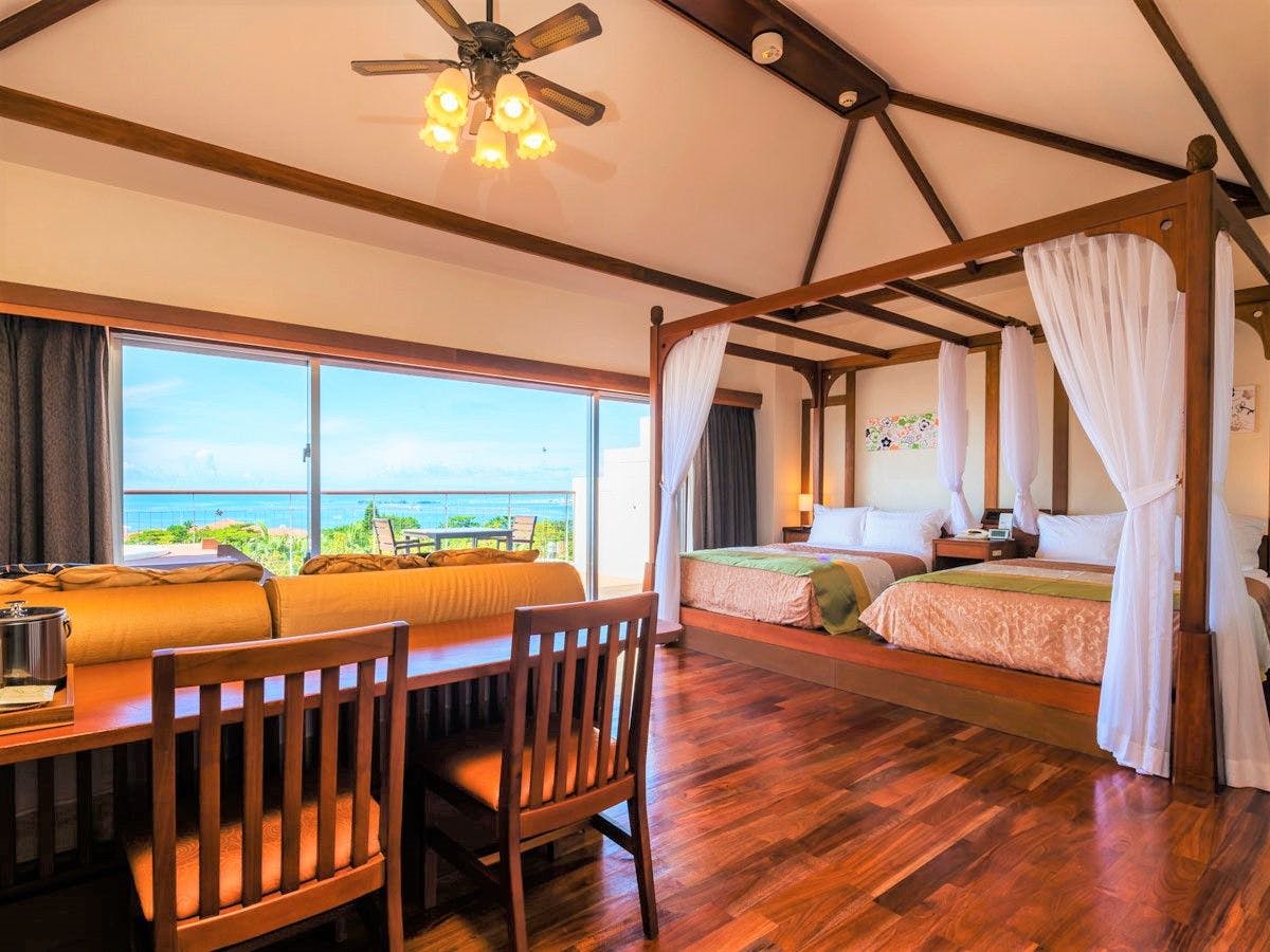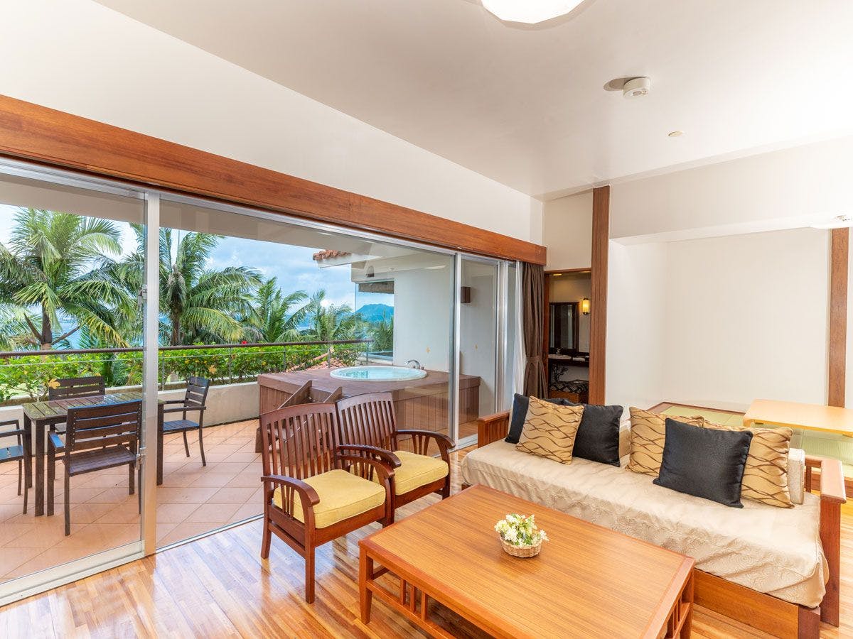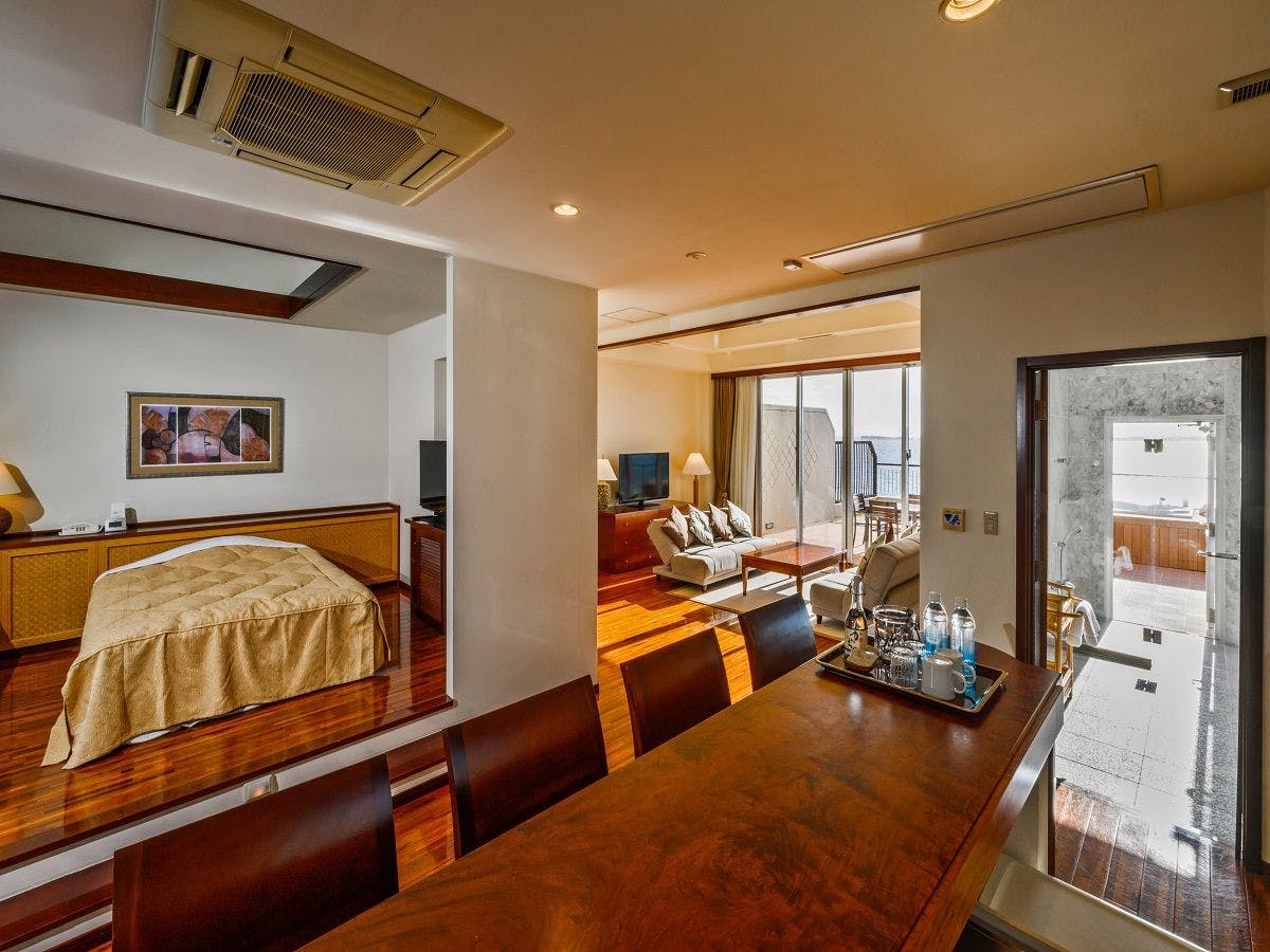 96平米以上のゆとりの空間が自慢のお部屋。アビアンビーチサイドコテージにご宿泊の方のみがご利用いただけるプライベートプール(4~10月)、広々としたバルコニーなど、お部屋のどこにいてもリラックスできる、ゆとりの空間をご堪能いただけます。
