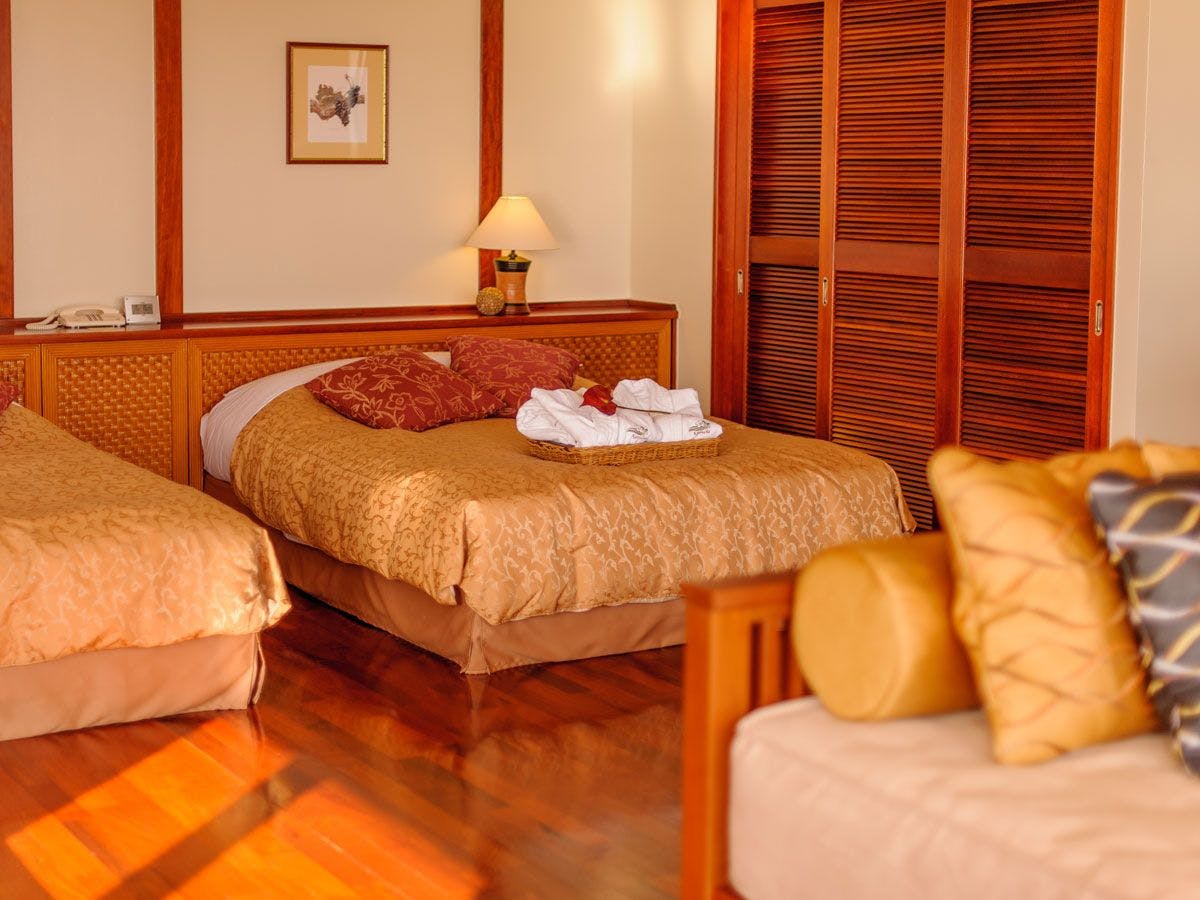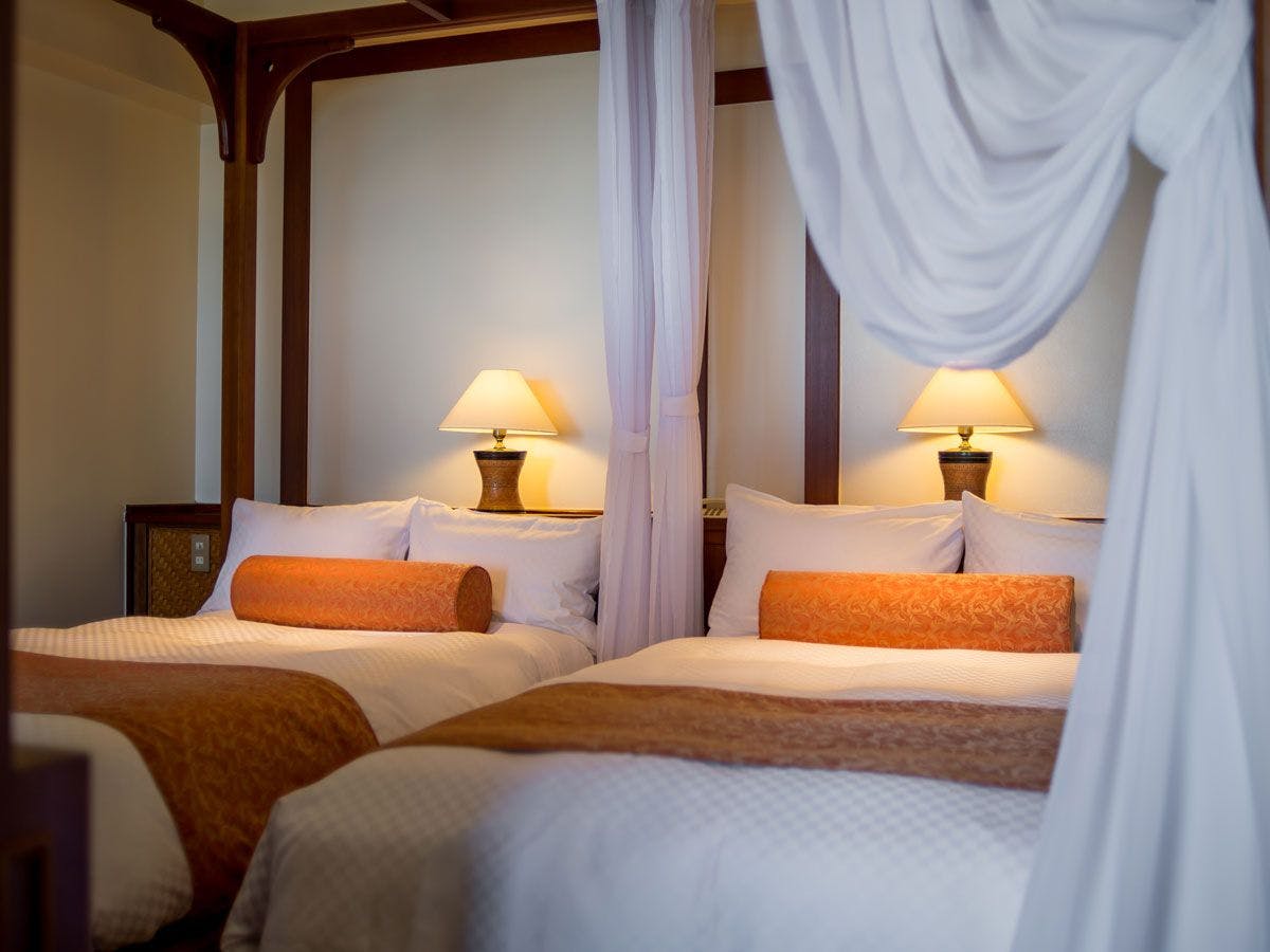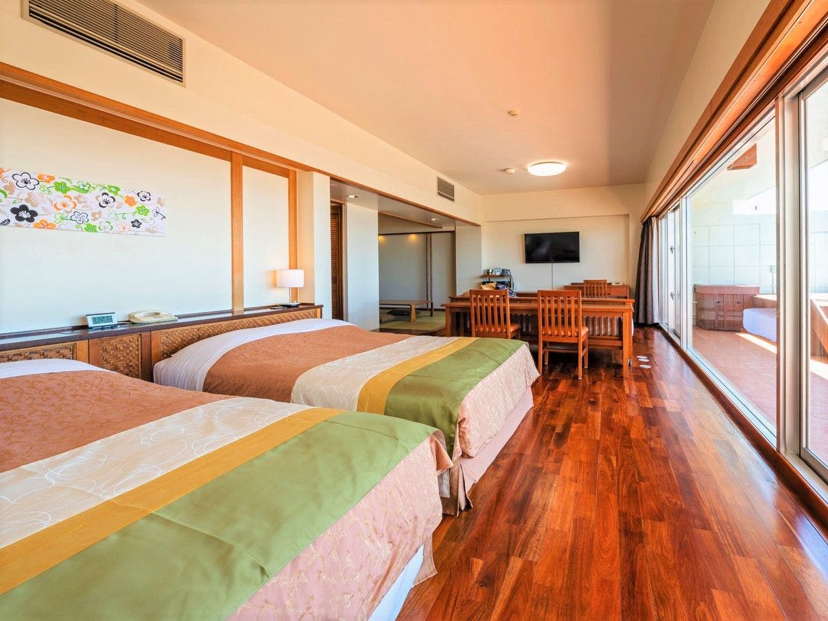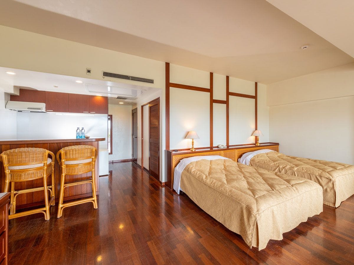96平米以上のゆとりの空間が自慢のお部屋。アビアンビーチサイドコテージにご宿泊の方のみがご利用いただけるプライベートプール(4~10月)、広々としたバルコニーなど、お部屋のどこにいてもリラックスできる、ゆとりの空間をご堪能いただけます。