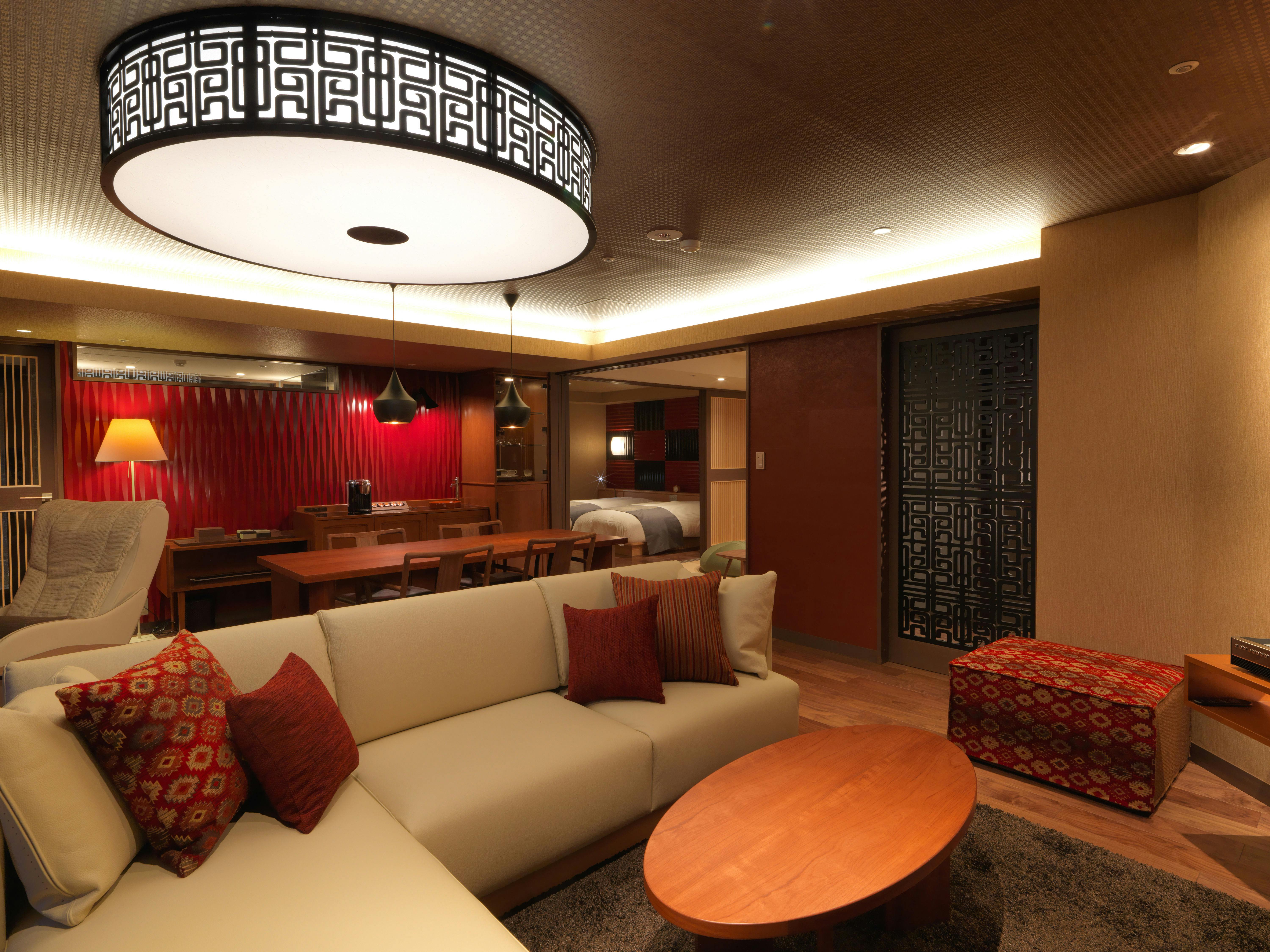 お部屋には、リビングルームと和室とベッドルームの3つのスペースをご用意。