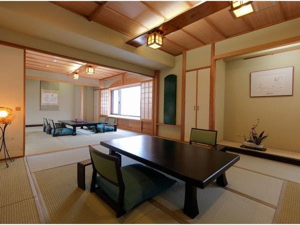 お部屋に入ると、眼前に四季折々の阿寒の景色が広がります。和室2間を合わせると、約20畳もあり、大人数でもゆったりとお過ごしいただけます。