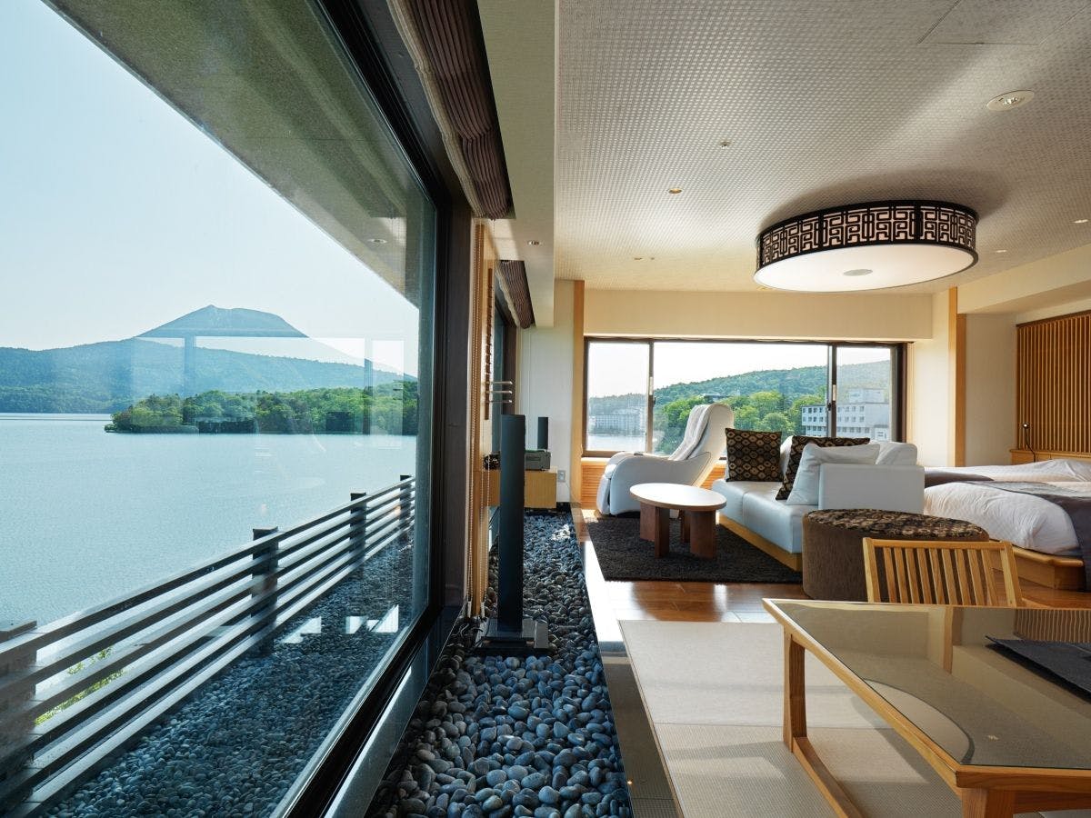 露天風呂から阿寒湖を間近に感じられる角部屋に位置し、ダイナミックな阿寒の自然を存分にお愉しみ頂けます。