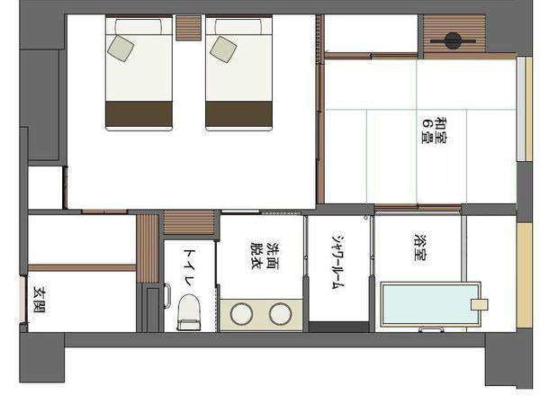 木蘭・柑子・伽羅:ツインルーム+4.5帖和室【檜風呂】