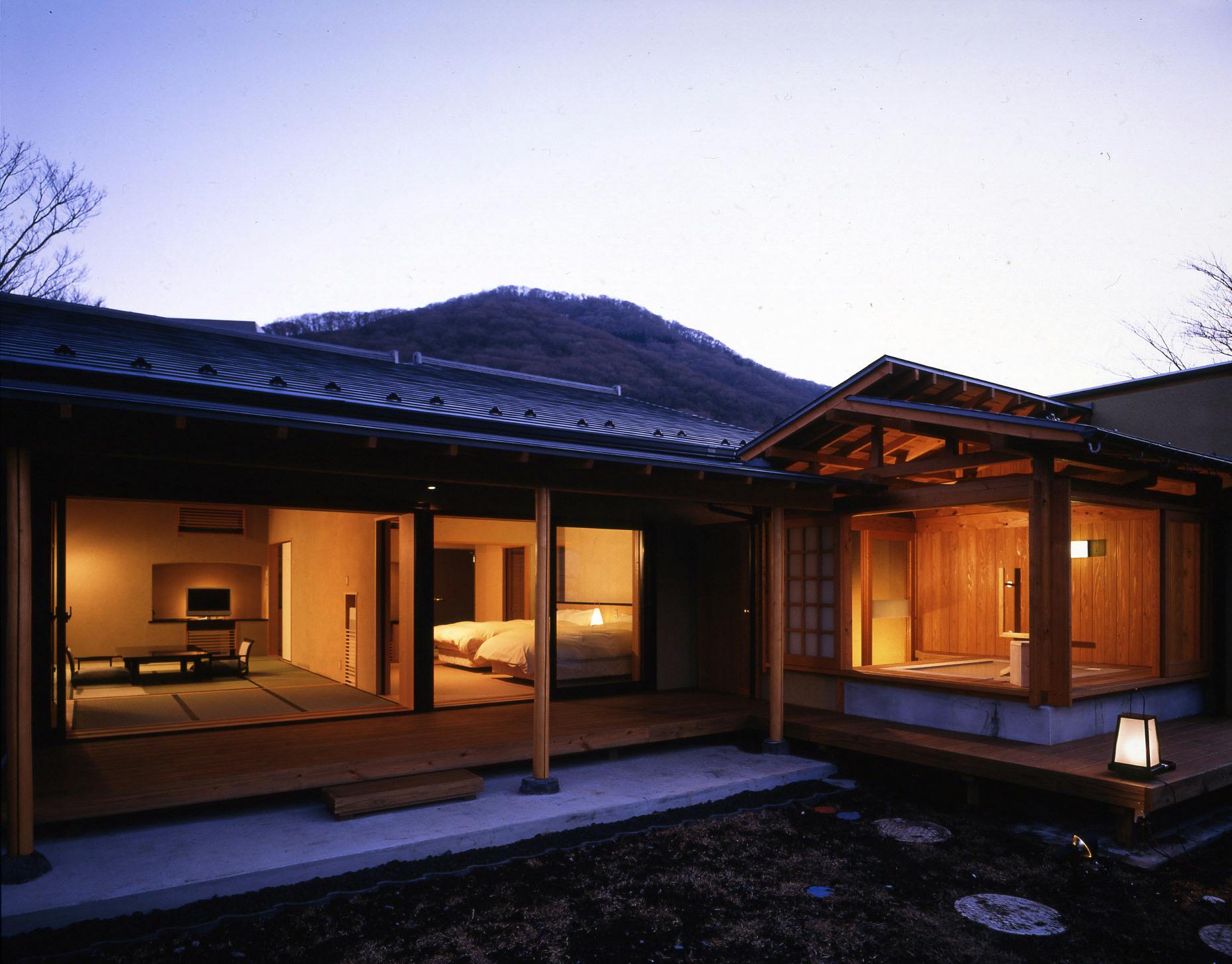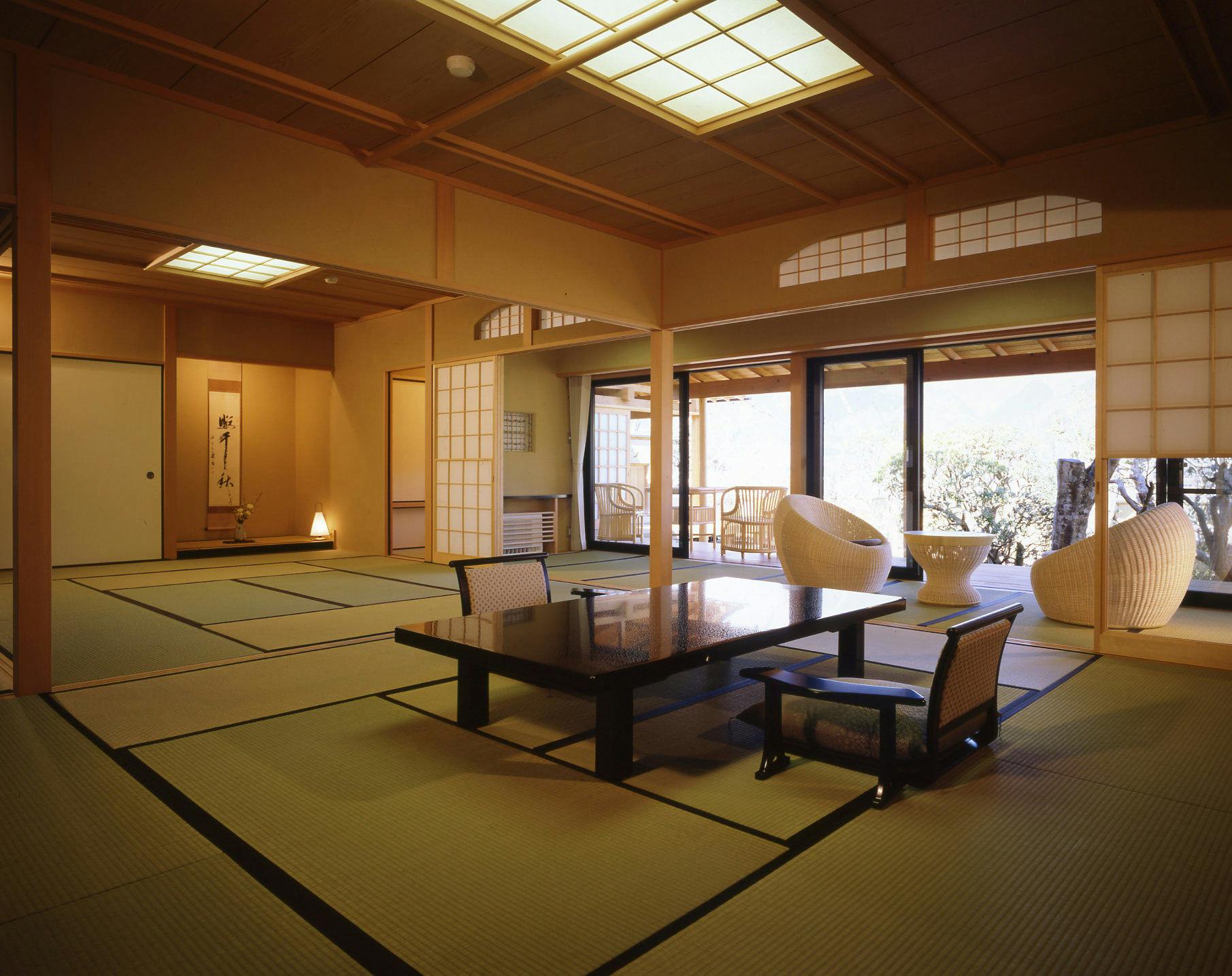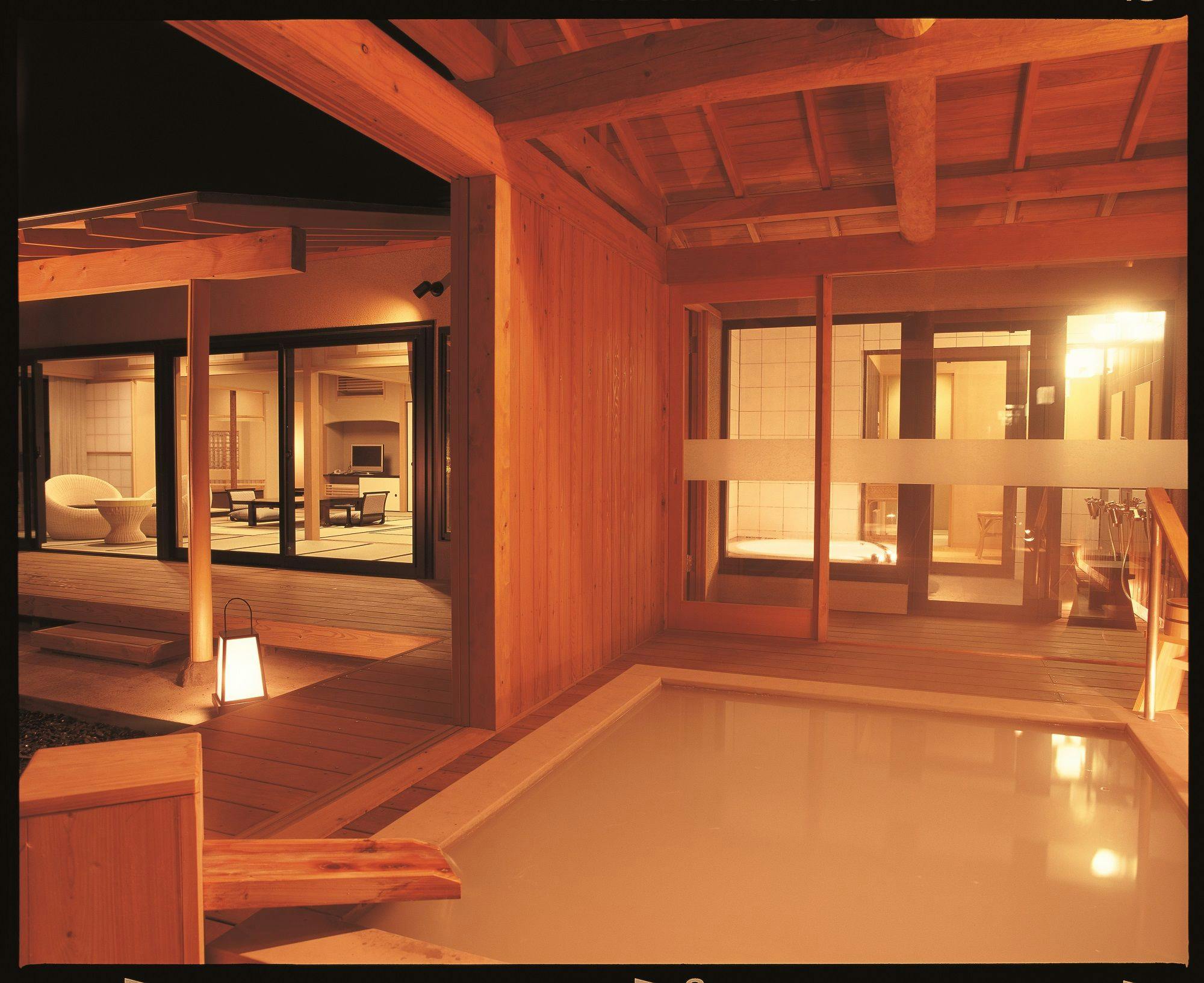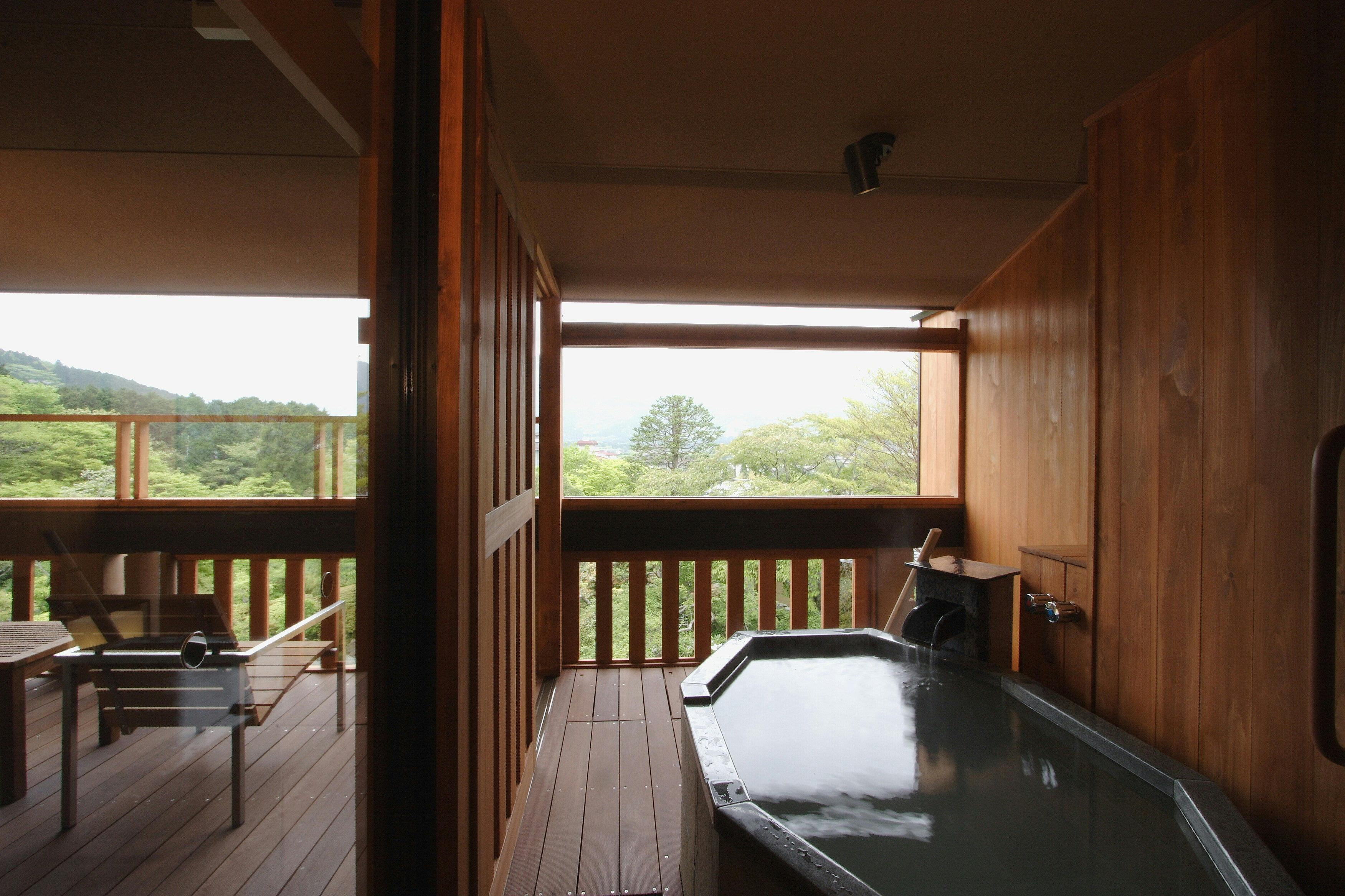 樹の香りただよう木造平屋数奇屋造り全室温泉露天風呂付きの別邸「奥の樹々」。露天風呂につながる寝室のプライバシースペースと客室係がお邪魔する和室ダイニングとに分かれております。箱根の山々、まわりの自然を満喫してゆったりとお過ごし下さい。