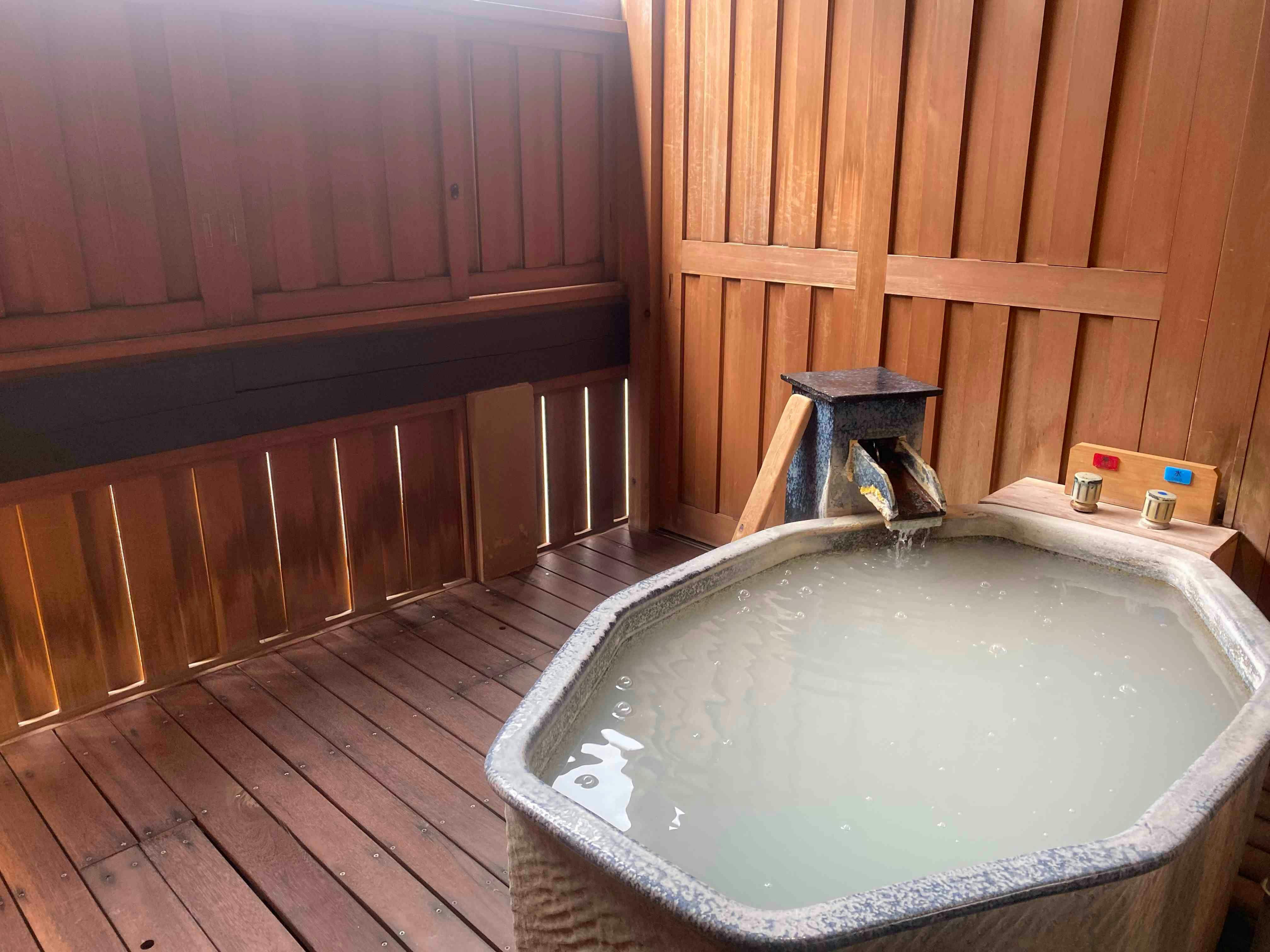 泉質は酸性硫酸塩泉。まじりっけなしの白い濁り湯をご堪能ください。