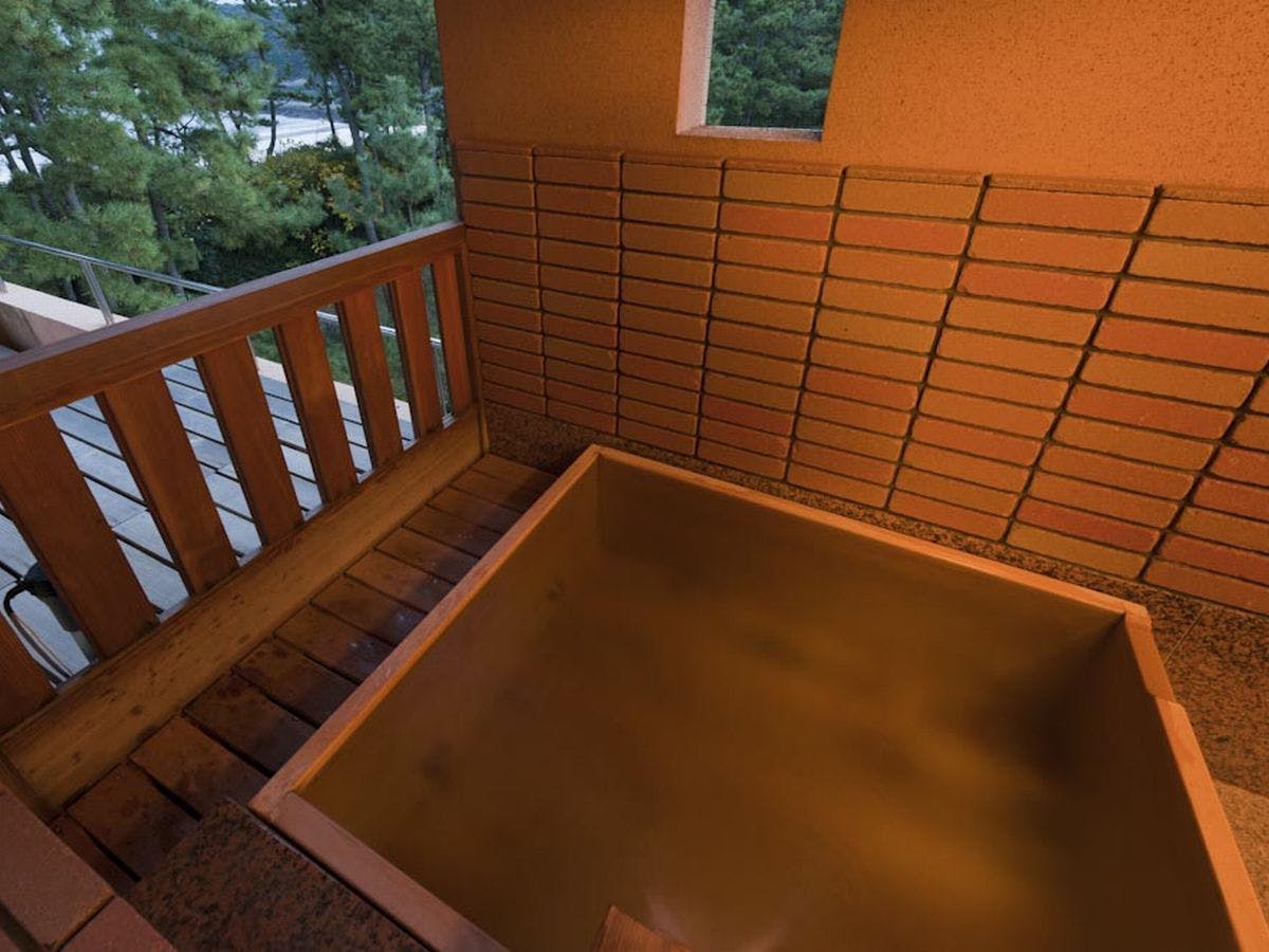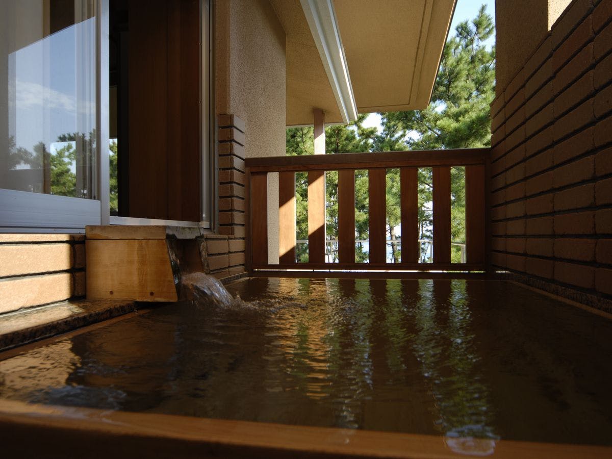 □温泉を引いた露天風呂付き客室になります(定員3名)