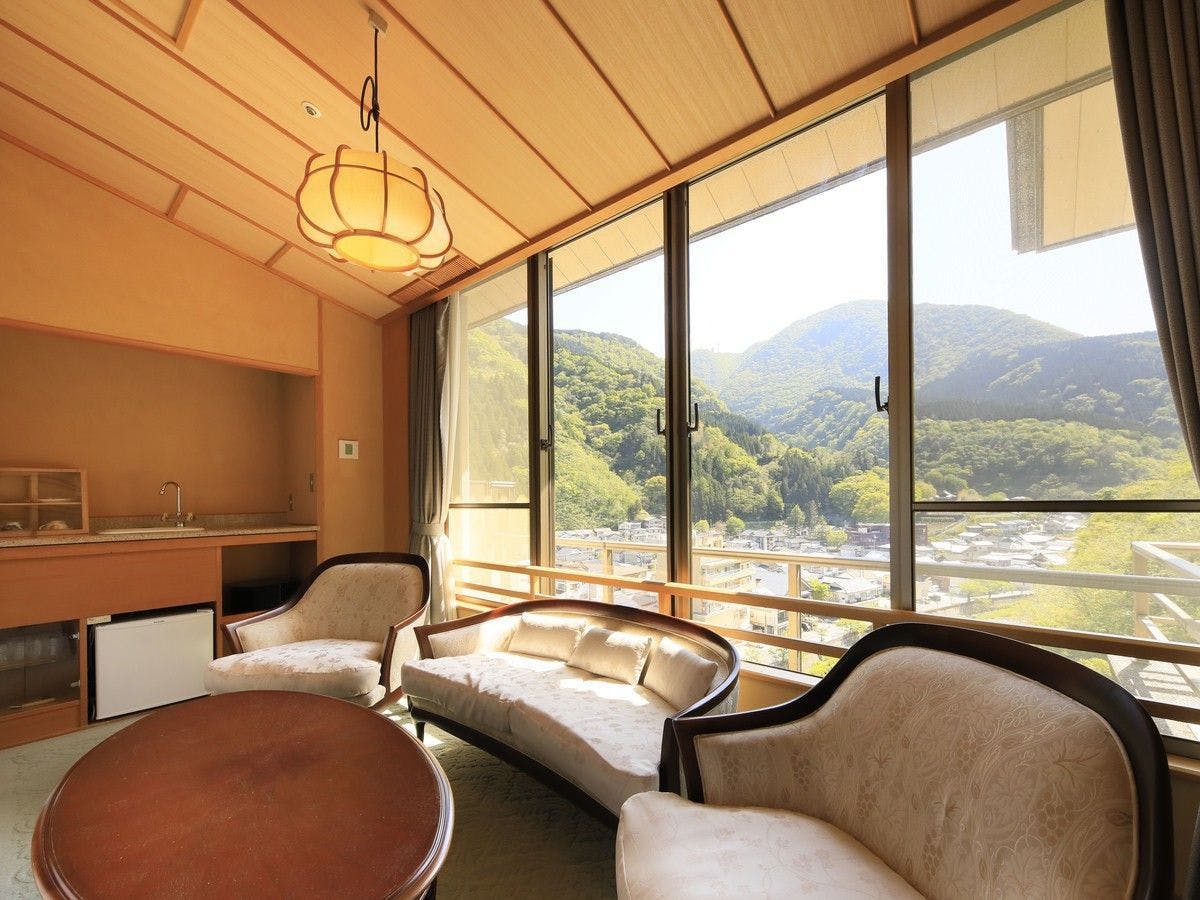 当館最上階にある、源泉かけ流し露天風呂付き客室。