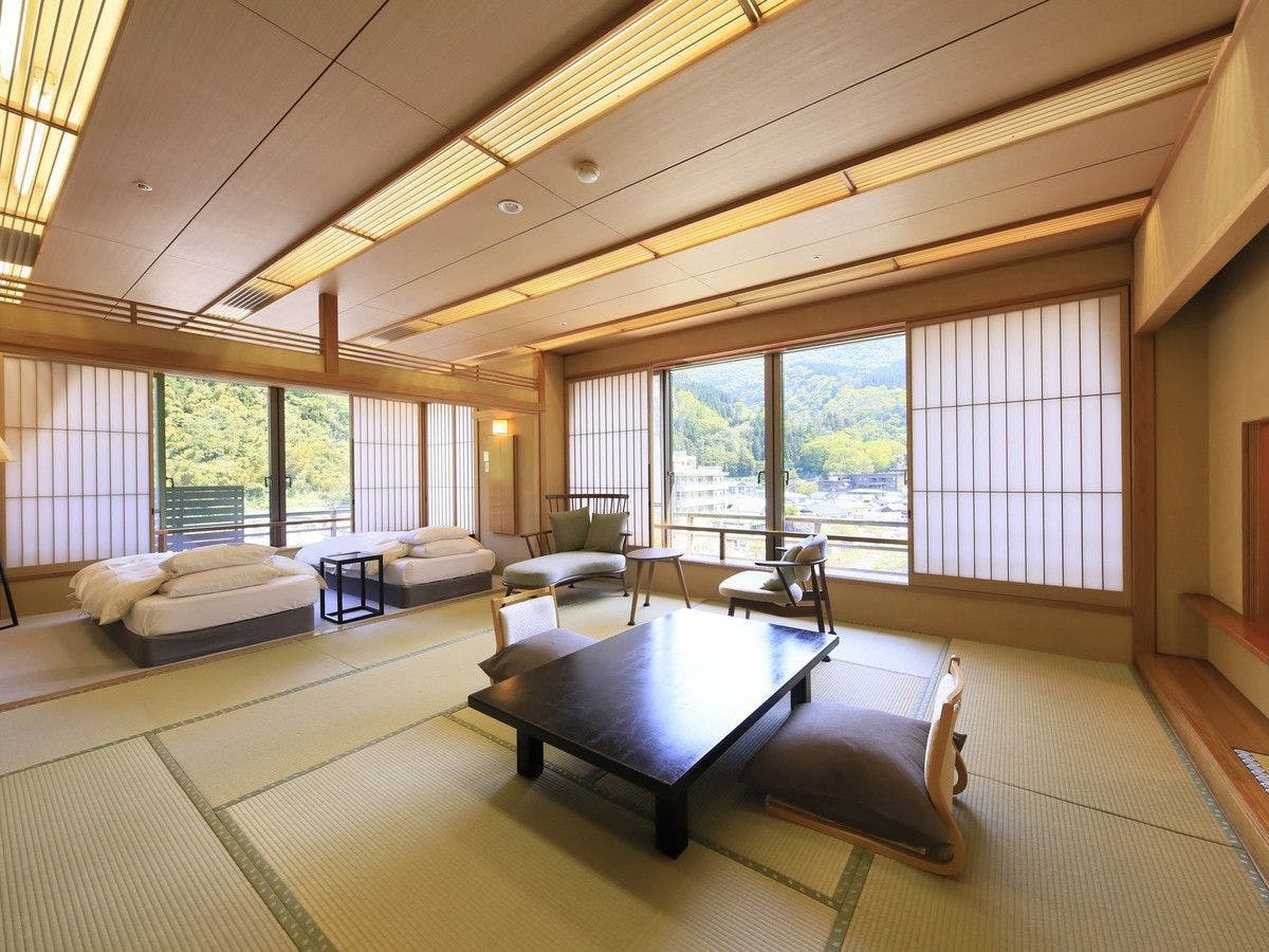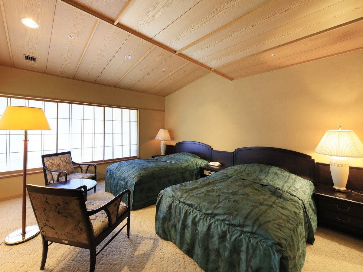 和室12.5畳+ツインベッド(7.5畳)+源泉かけ流し檜の内湯