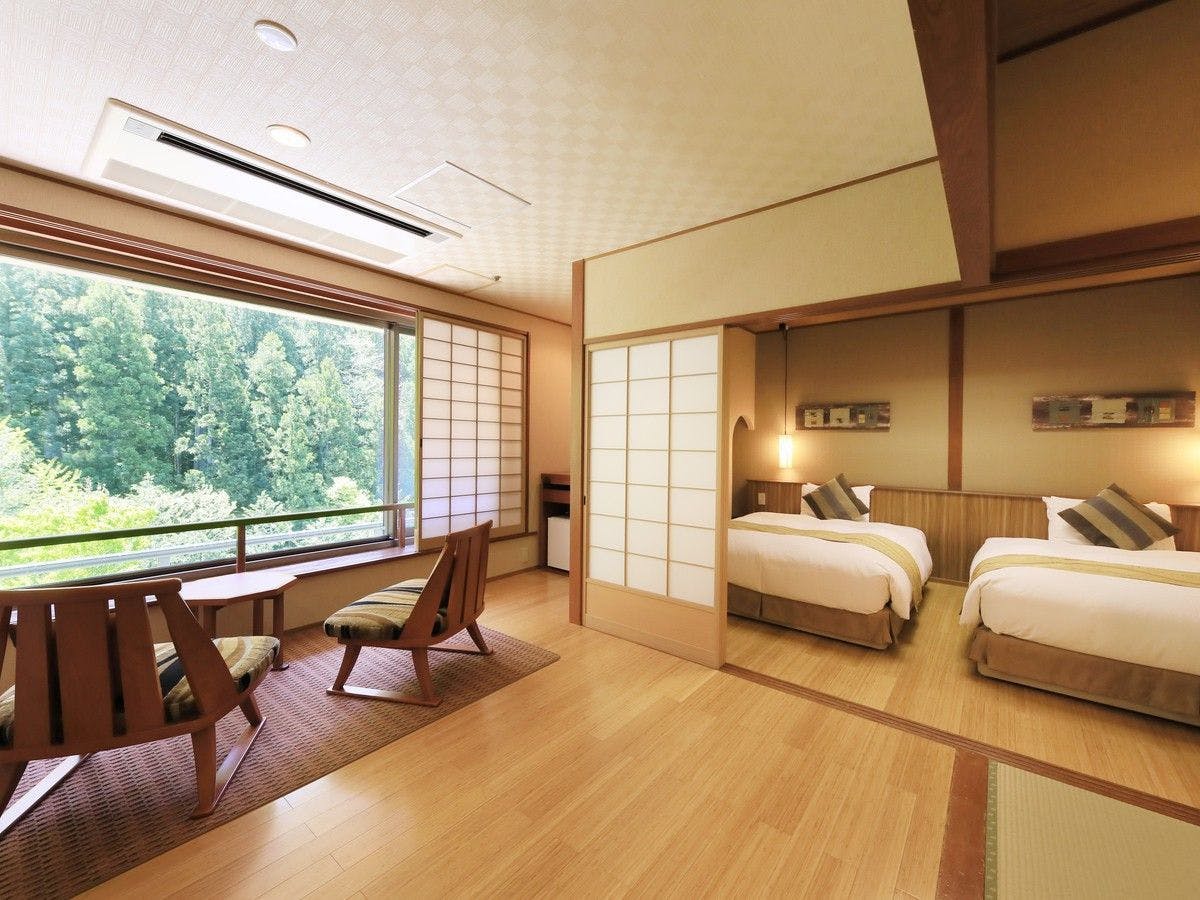 和室10畳+広縁+ツインセミダブルベッドルーム+檜の内湯/山側