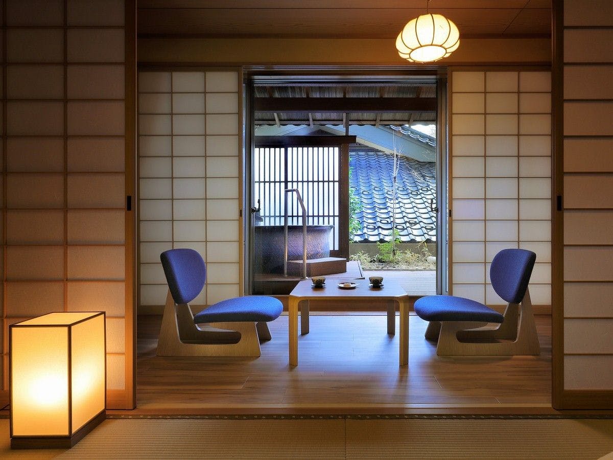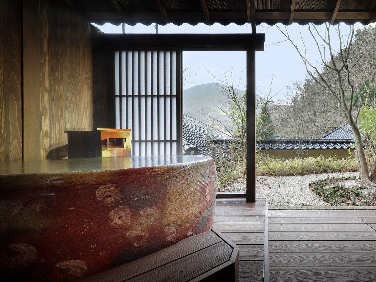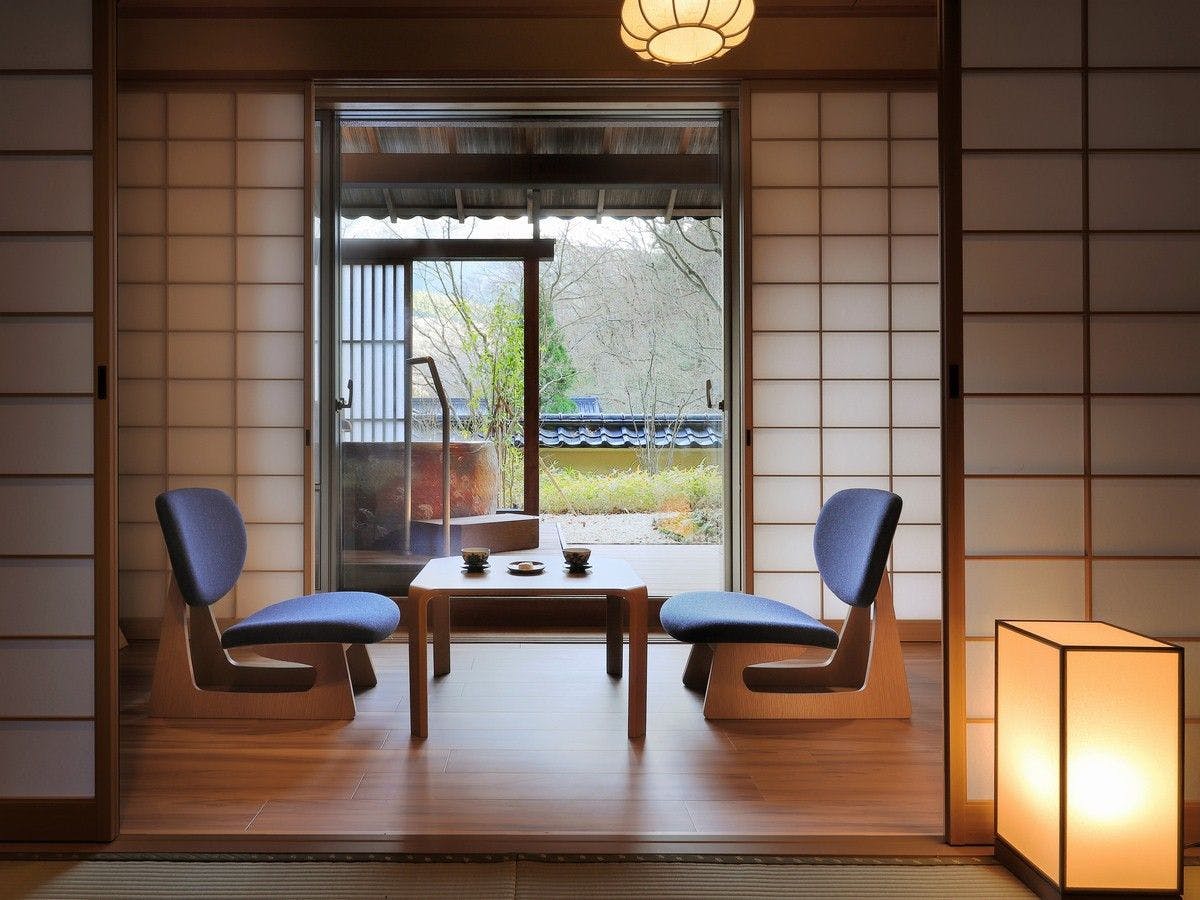源泉かけ流し露天風呂付きの和モダンツイン。