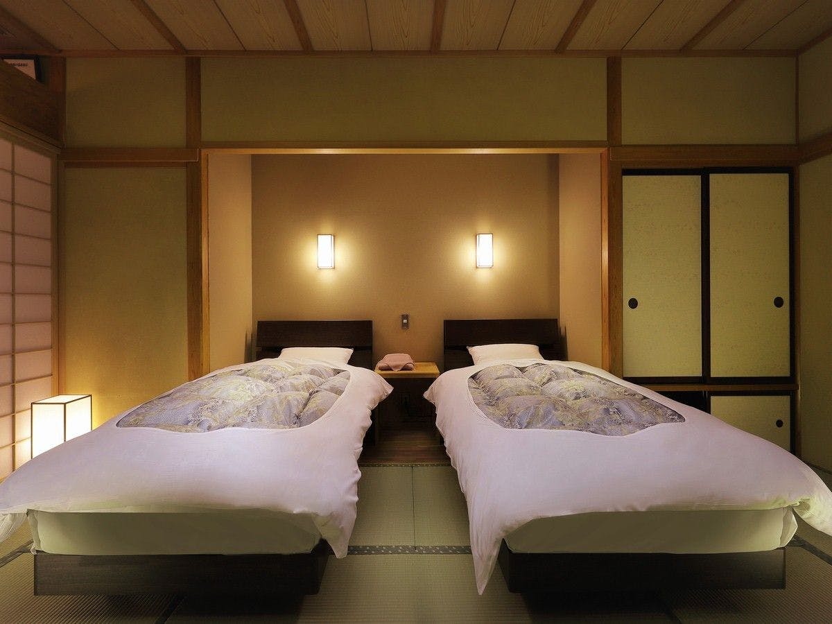 和室12畳+ツインベッド+源泉かけ流し露天風呂