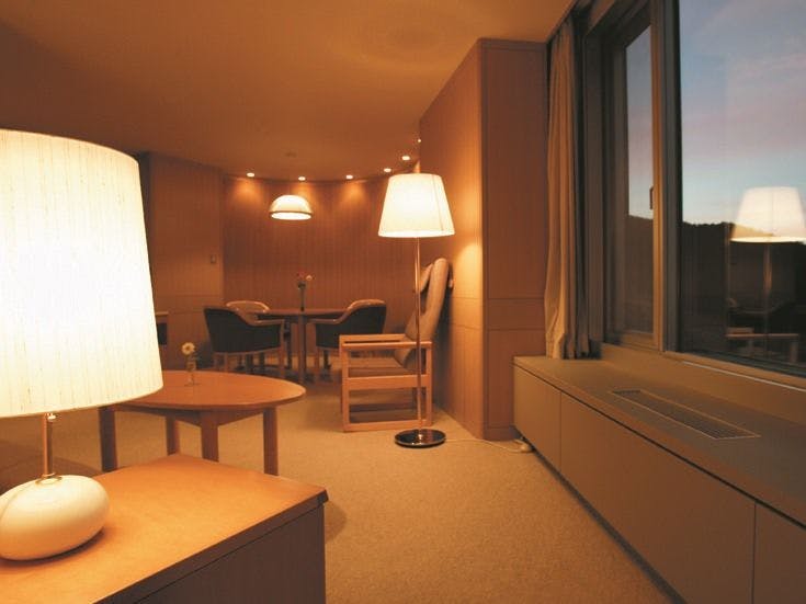 ベッドサイズ : 183cm×203cm 上質な眠りを誘う「シモンズ製ベッド」を導入。インターネット回線(無線LAN)を無料でご利用いただけます。※有線LANをご希望のお客さまは客室係までお申し出ください。テレビ(一般チャンネル・衛星放送)/ペイテレビ/電話/ドライヤー/冷蔵庫/電気ポット/シャワートイレなどをご用意しております。