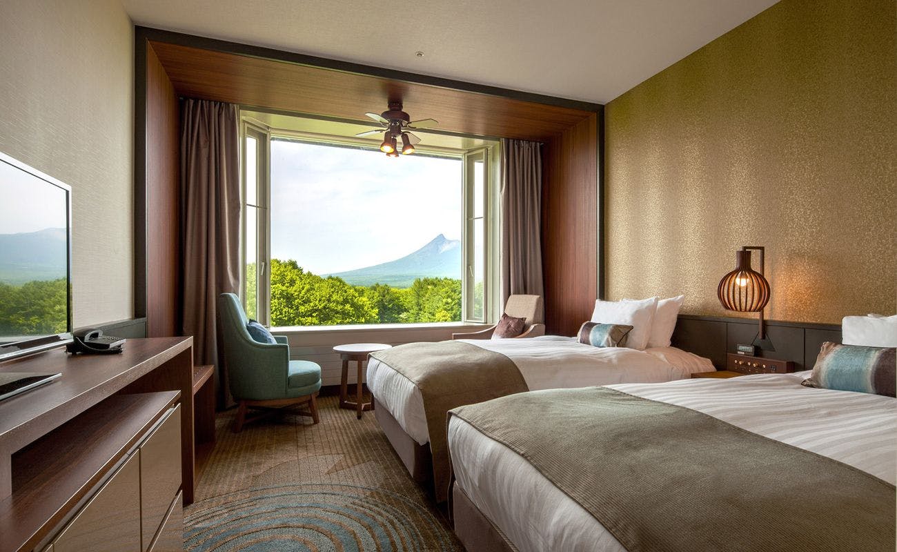 大きな空から雄大な森を望むツインルーム