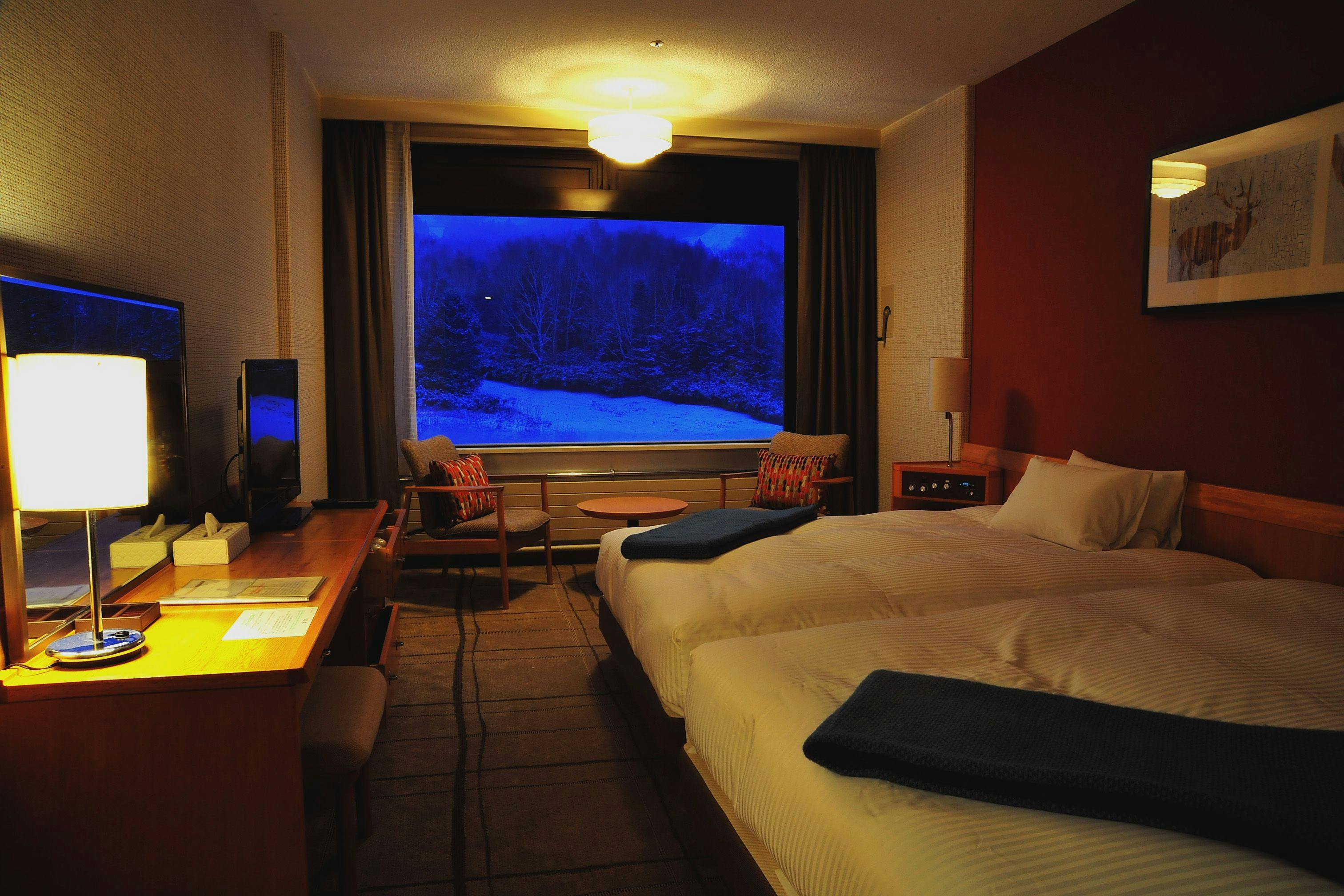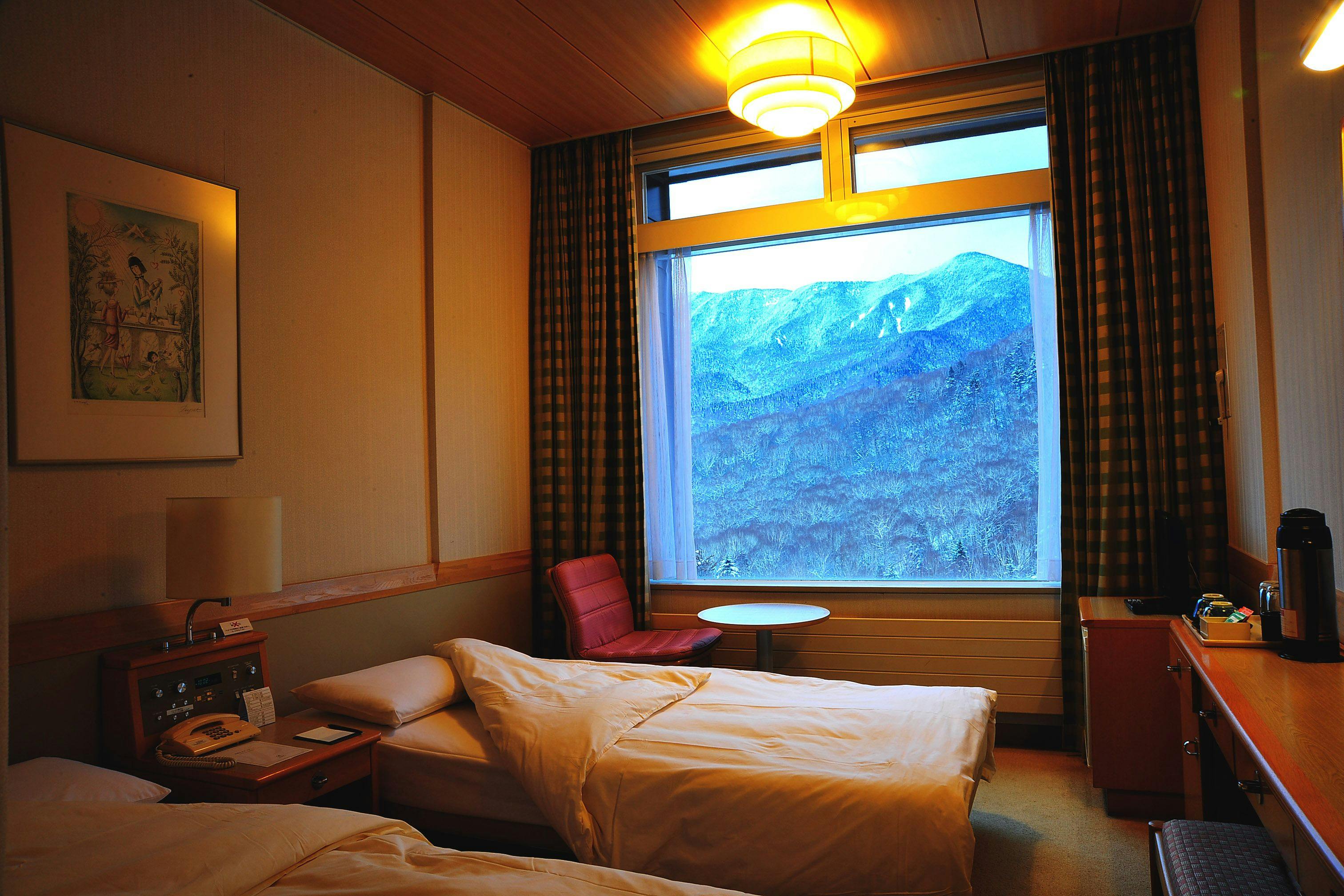 すべての部屋の窓からはゲレンデが広がり、白く輝く針葉樹を眺められる絶好のロケーションになっています。