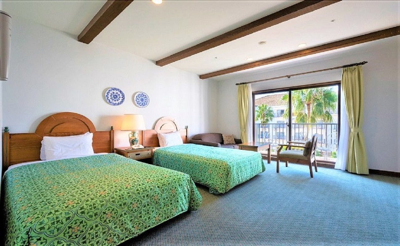 グリーンを基調にした客室