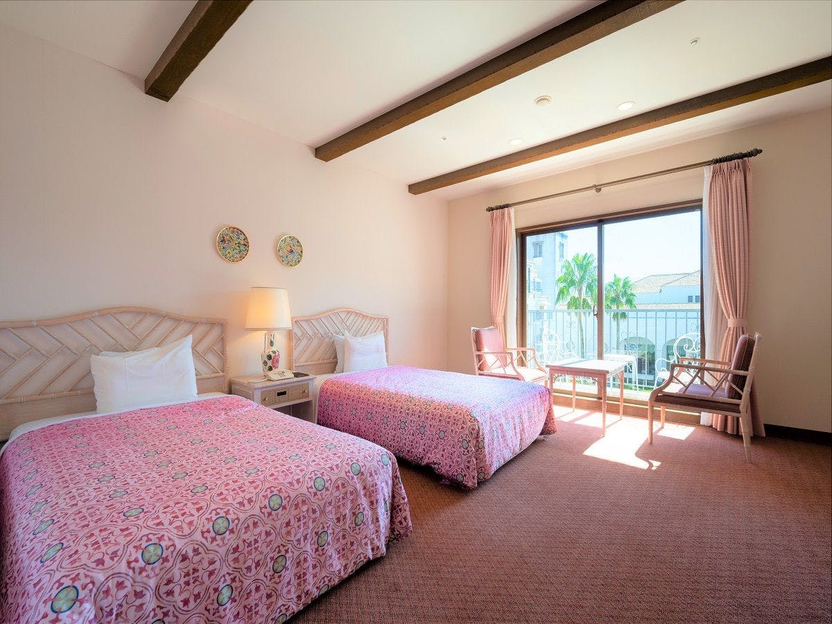 ピンクを基調にした客室