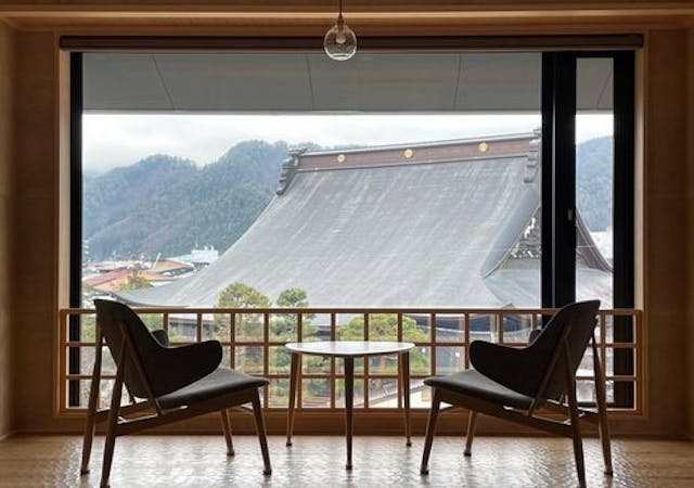観月楼3階の客室を改装したひのきの展望風呂付の特別室。