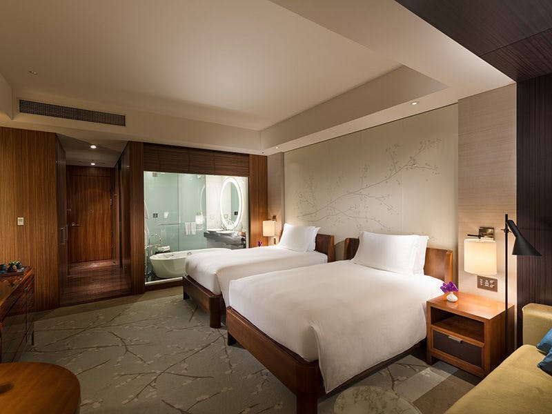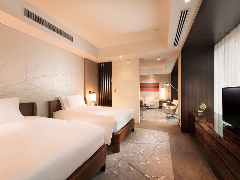 ベッドルームとリビングルームがそれぞれセパレートになったスイートルームの広さは72平米。ダイナミックな高層ビル群を一望するゆったりとした空間でのステイをお楽しみください。 ※シティスイートはすべてツインベッドタイプです。
