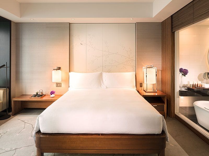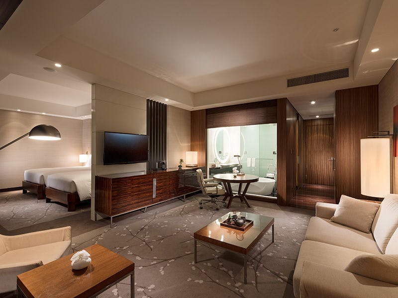 ベッドルームとリビングルームがそれぞれセパレートになったコーナースイートの広さは72平米。ダイナミックな高層ビル群を一望するゆったりとした空間でのステイをお楽しみください。