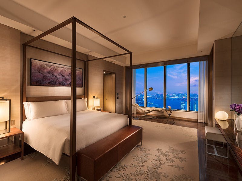 東京・汐留にあるホテル、コンラッド東京。新橋、銀座から徒歩圏内にあり、東京湾と浜離宮を望む絶好のロケーション。格式の高さと和風モダンな空間が、やすらぎの時を演出します。