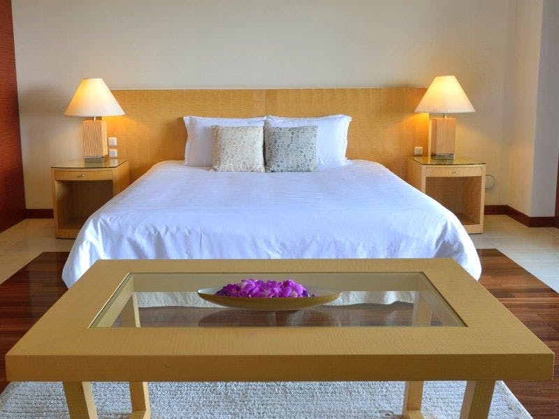 壮大な東シナ海の眺望を独り占めするペントハウススイート。スタイリッシュなインテリアとシンプルな中にも風格のある装飾が、セレスティアルなスイートルームを印象深く演出します。