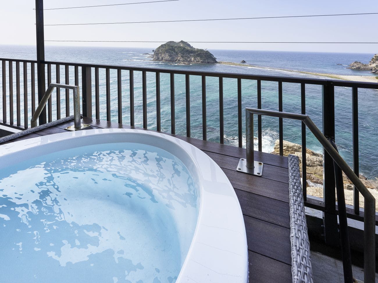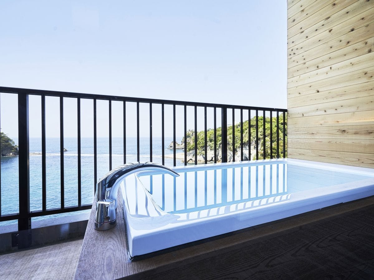 イタリア語で「紺碧」を意味するイル・アズーリは、全室オーシャンビュー客室露天風呂付のホテルとして2021年7月16日にオープンいたしました。全客室の露天風呂から眺望の移り変わりをお楽しみいただけます。