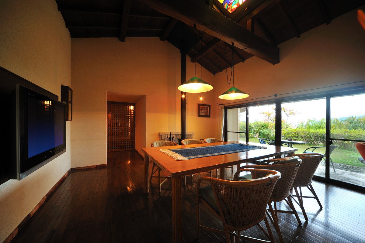 ゆったりと滞在し、好きなときにいつでも気兼ねなく入浴できる半露天風呂は蔵王の石をくりぬいた岩風呂です。 最大6名様までお泊まりいただけます。