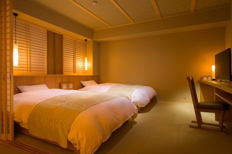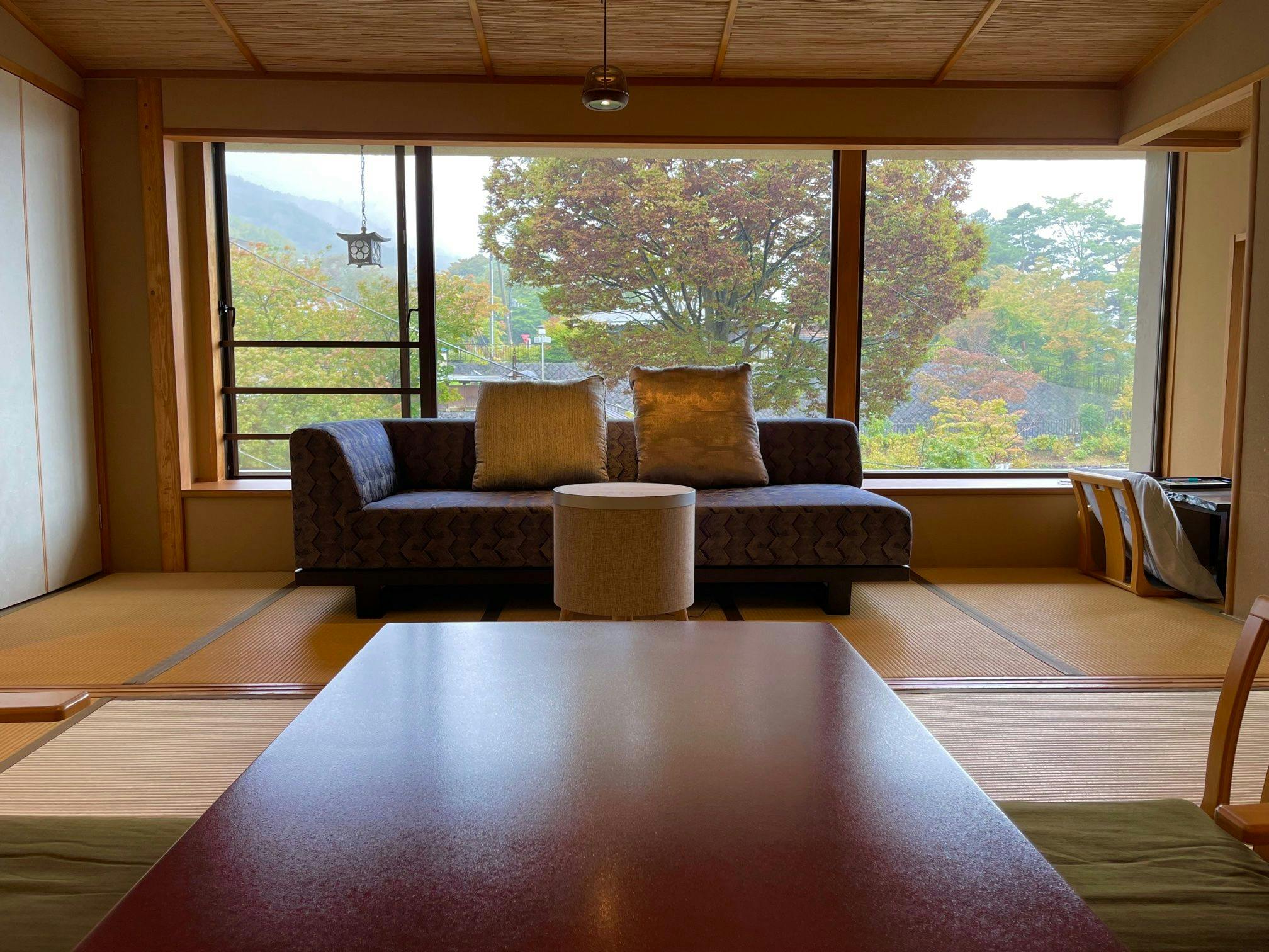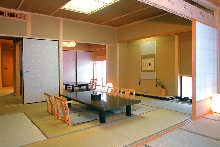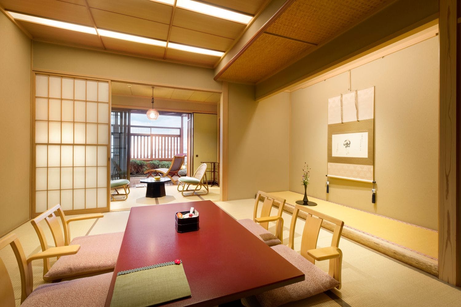 お部屋の広さは、12帖+広縁3帖・7.5帖+広縁3帖と2間あり、ウォシュレットや地デジテレビも完備しておりますので、湯ったりとおくつろぎいただけます。