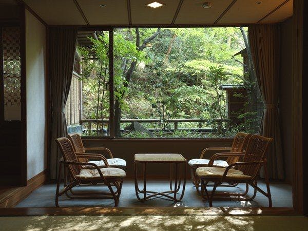 森林に包まれた5万坪の大庭園ののびやかな美しさ。但馬牛や松葉かになど旬の食材を贅沢にあしらったお料理の数々をお楽しみください。