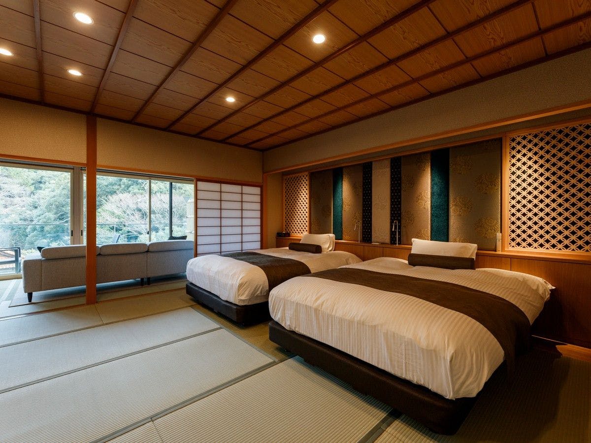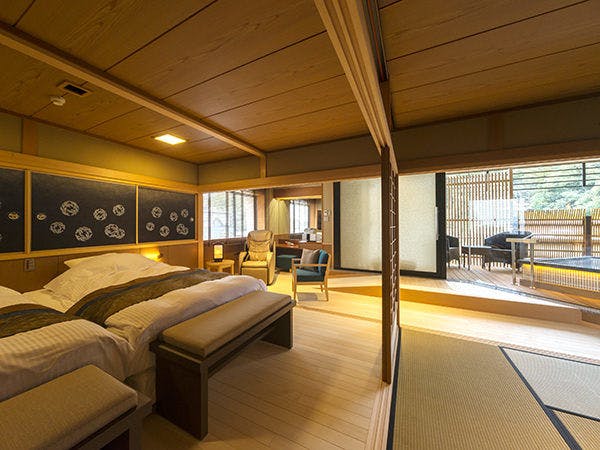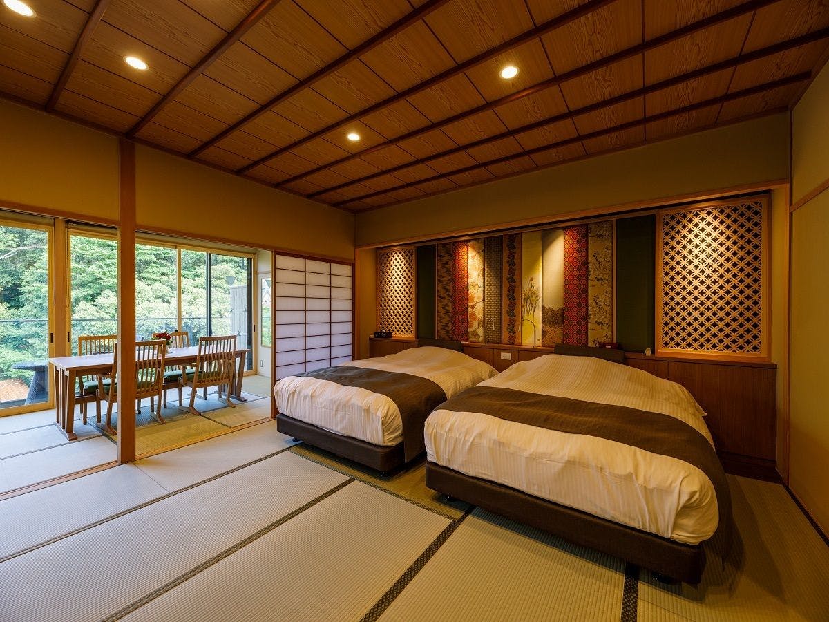 ●ツインベッドを配した12.5畳和室+ダイニング+ウッドデッキ+露天風呂 禁煙室