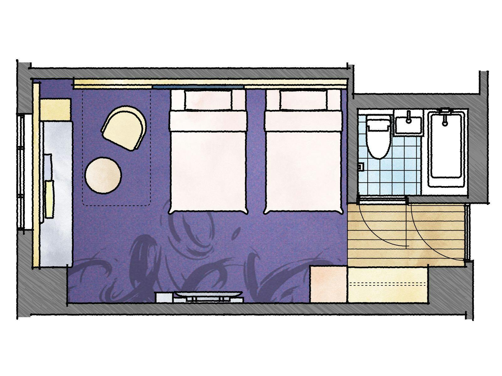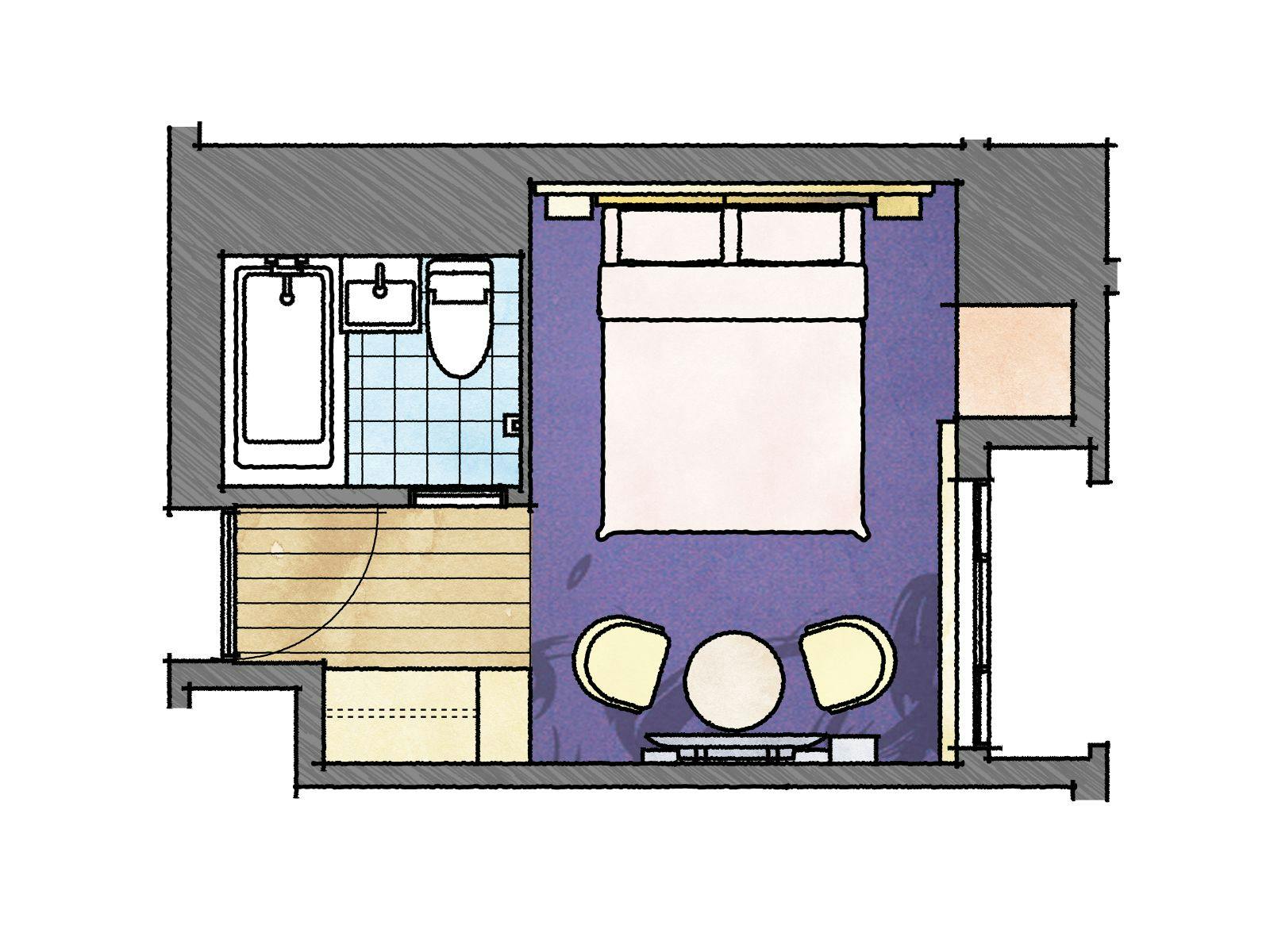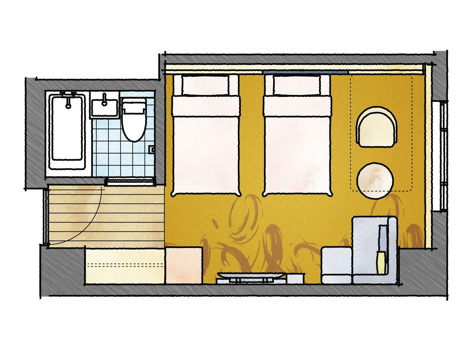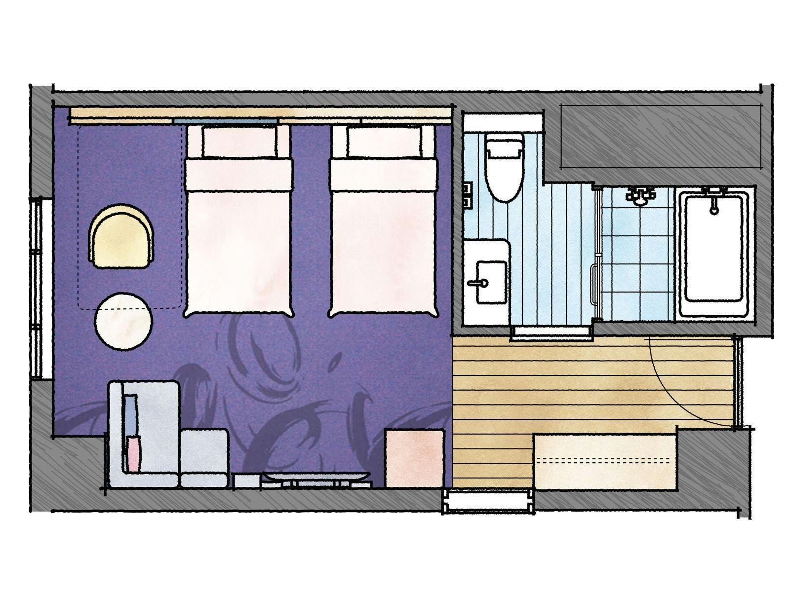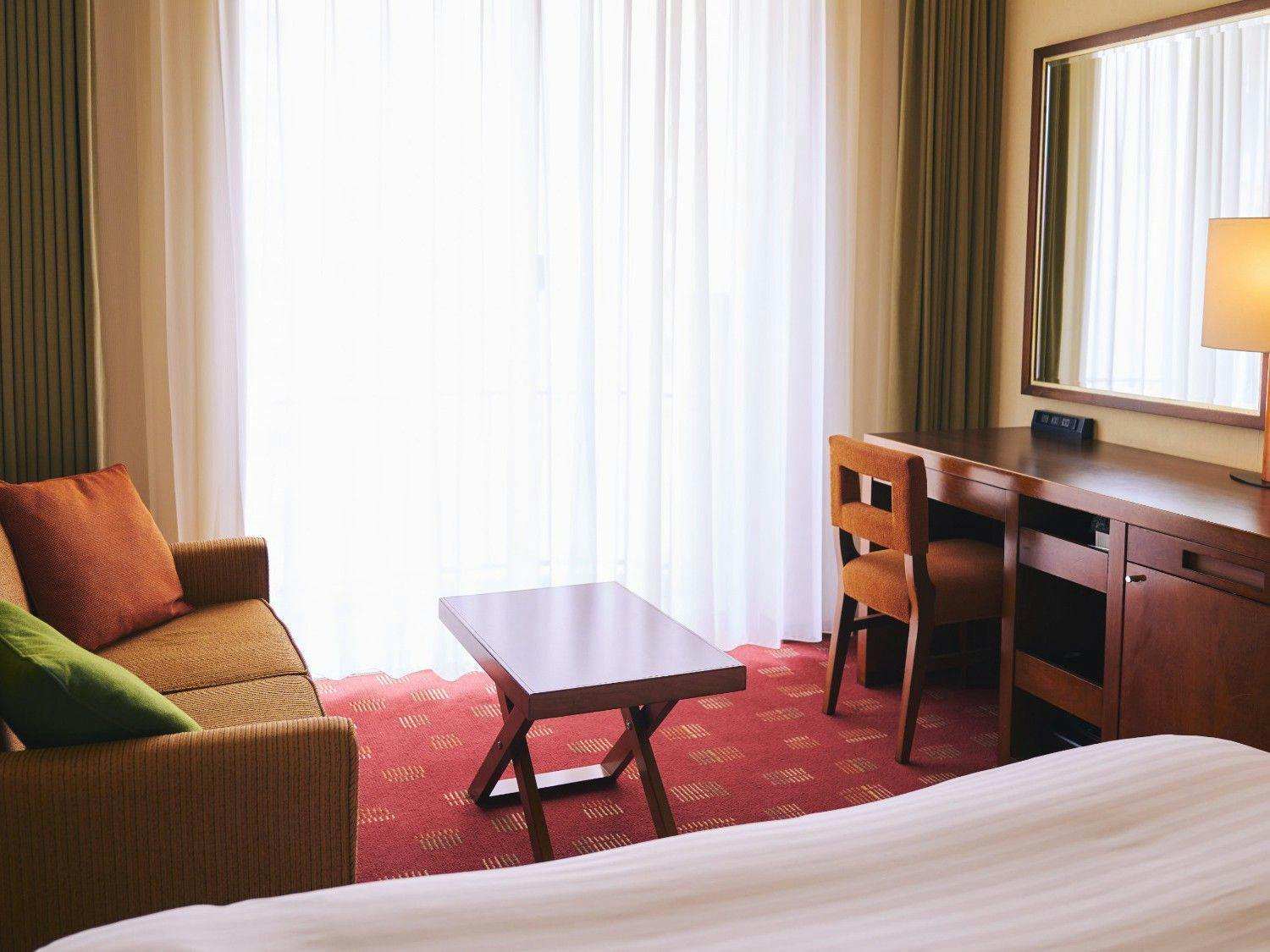 サウスウィング最上階に位置し、ガラスのチャペル「アクアクリスタル」が佇む中庭を望むガーデンビューのお部屋。